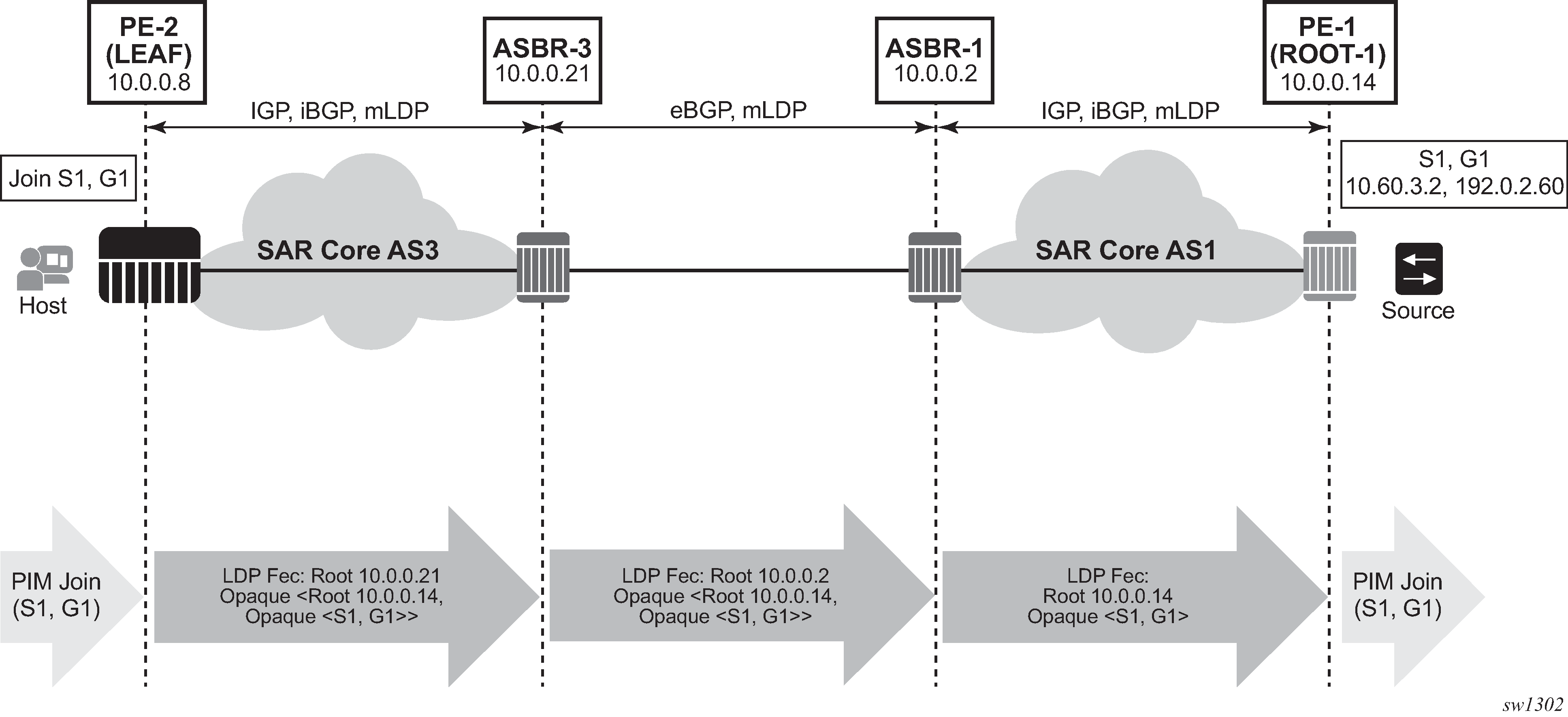 When a network has two or more IGP areas, or instances, inter-area LSPs are required for MPLS connectivity between the PE devices that are located in the distinct IGP areas. To extend LDP across multiple areas of an IGP instance or across multiple IGP instances, the current standard LDP implementation based on RFC 3036, LDP Specification, requires that all /32 prefixes of PEs be leaked between the areas or instances. IGP route leaking is the distribution of the PE loopback addresses across area boundaries. An exact match of the prefix in the routing table (RIB) is required to install the prefix binding in the FIB and set up the LSP.