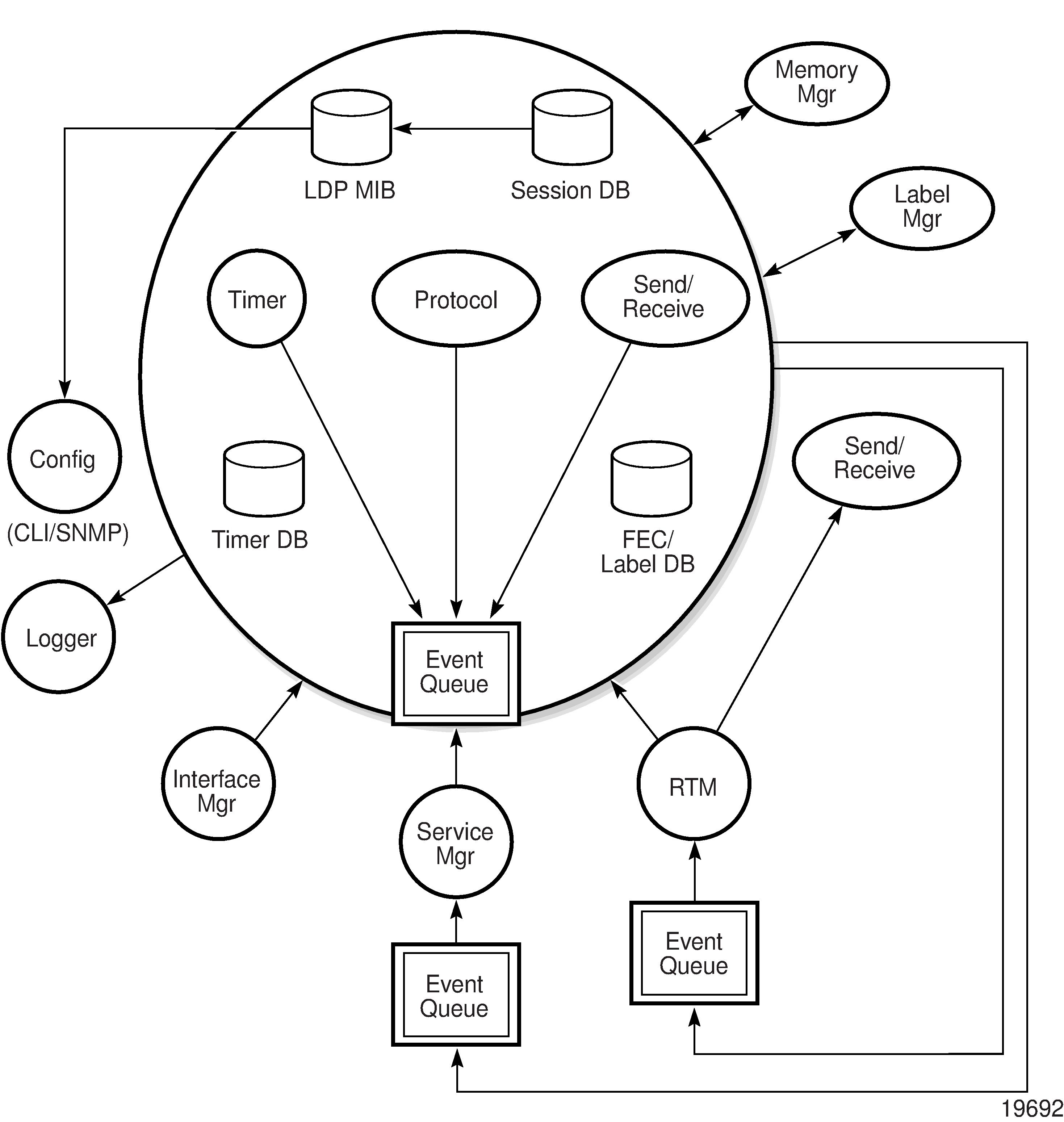 Communication within LDP tasks is typically done by interprocess communication through the event queue, as well as through updates to the various data structures. The following list describes the primary data structures that LDP maintains: