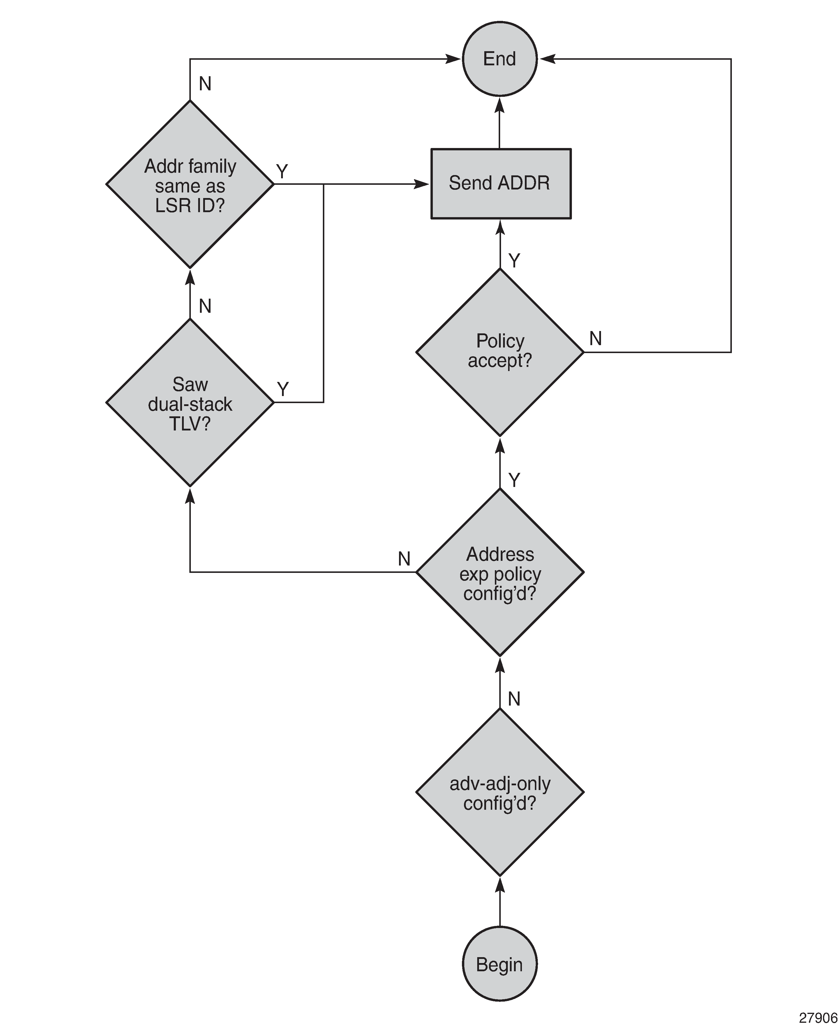 MPLS must be enabled when LDP is initialized. LDP makes sure that the various prerequisites are met, such as ensuring that the system IP interface and the label manager are operational, and ensuring that there is memory available. It then allocates a pool of memory to itself and initializes its databases.
