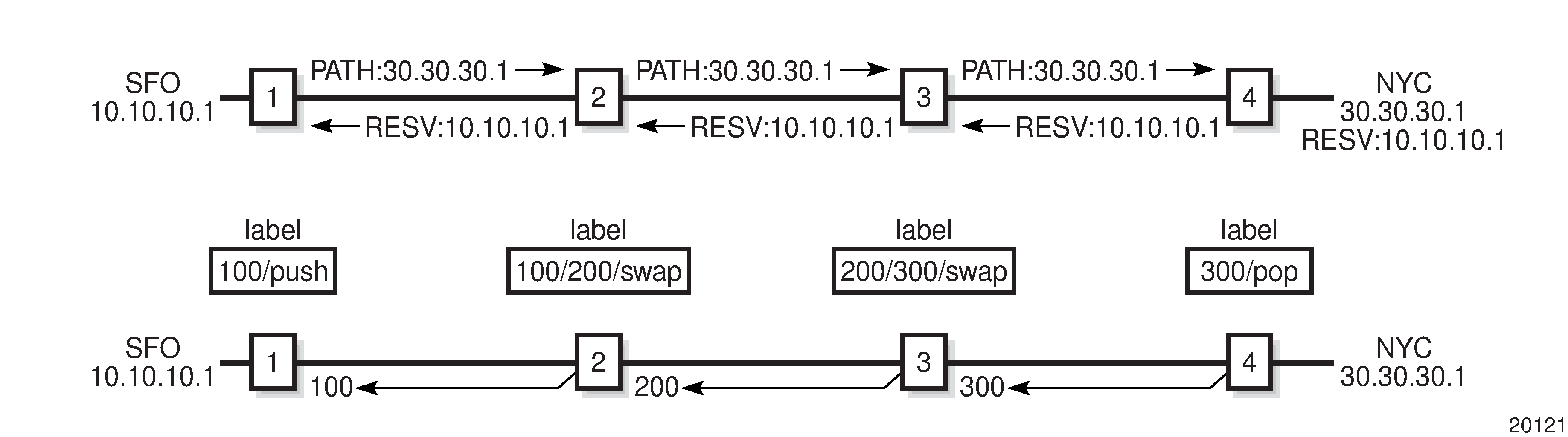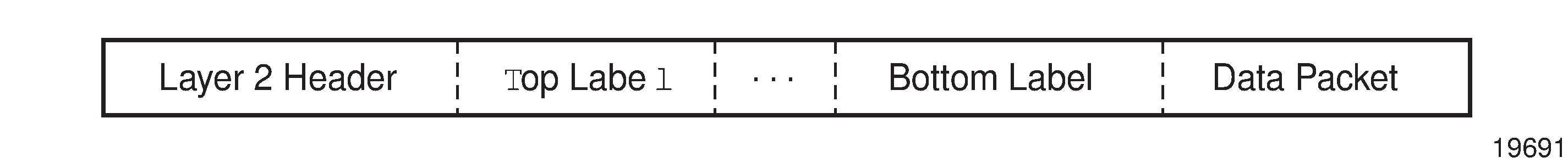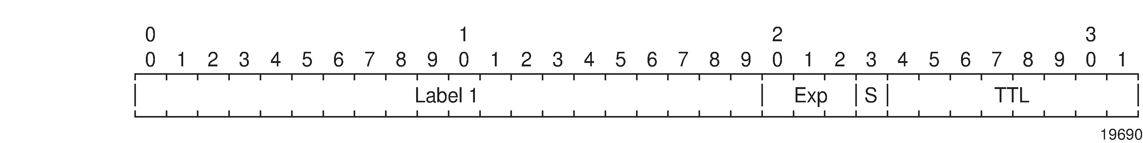 As described in RFC 3032, MPLS Label Stack Encoding, the label stack is represented as a sequence of ‟label stack entries”. Each label stack entry is represented by 4 octets. The following figure shows the structure of a label and the table describes the fields.
