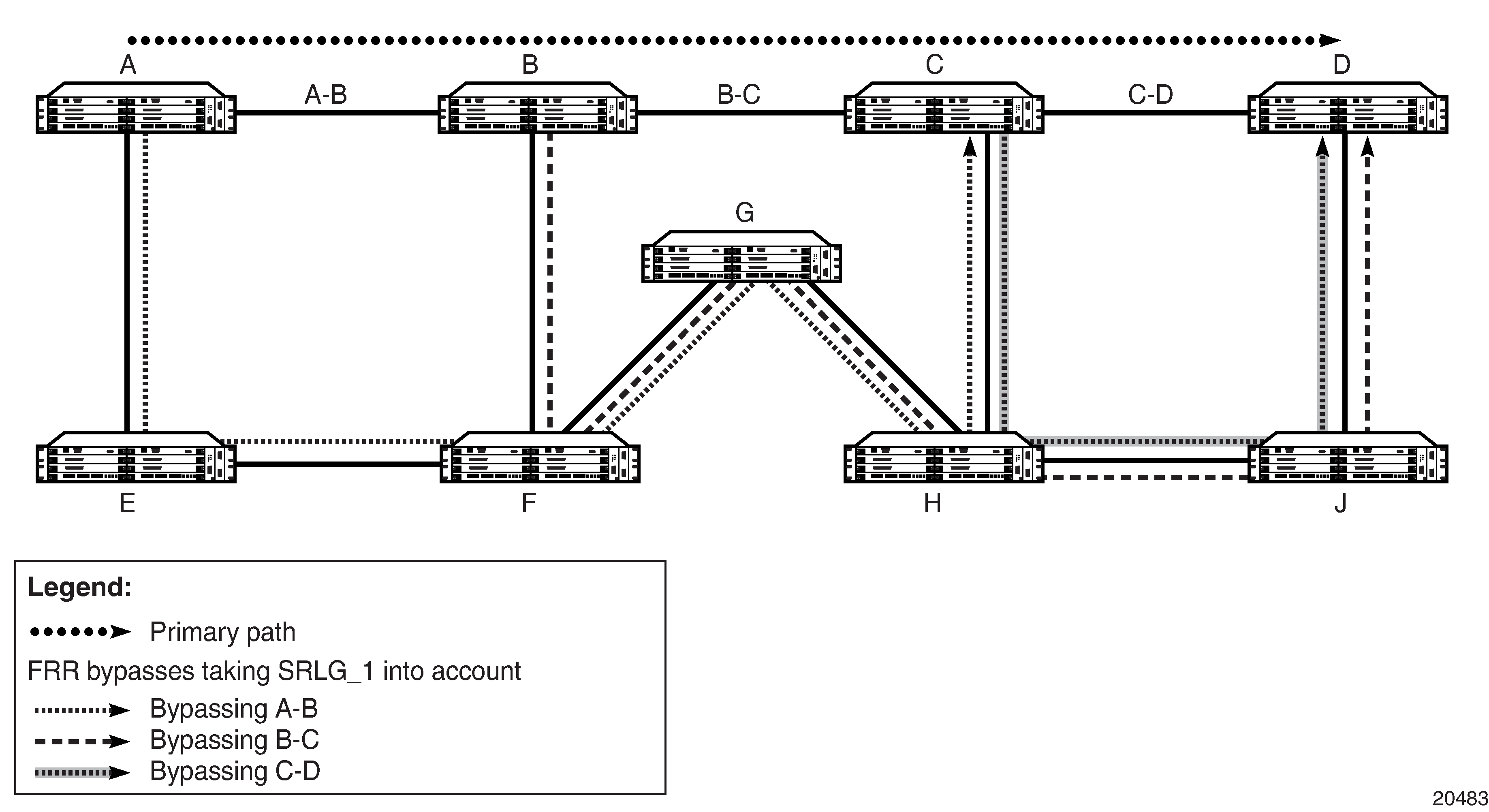 In addition, the 7705 SAR provides link and node redundancy protection through LSP redundancy and fast reroute (FRR) features.