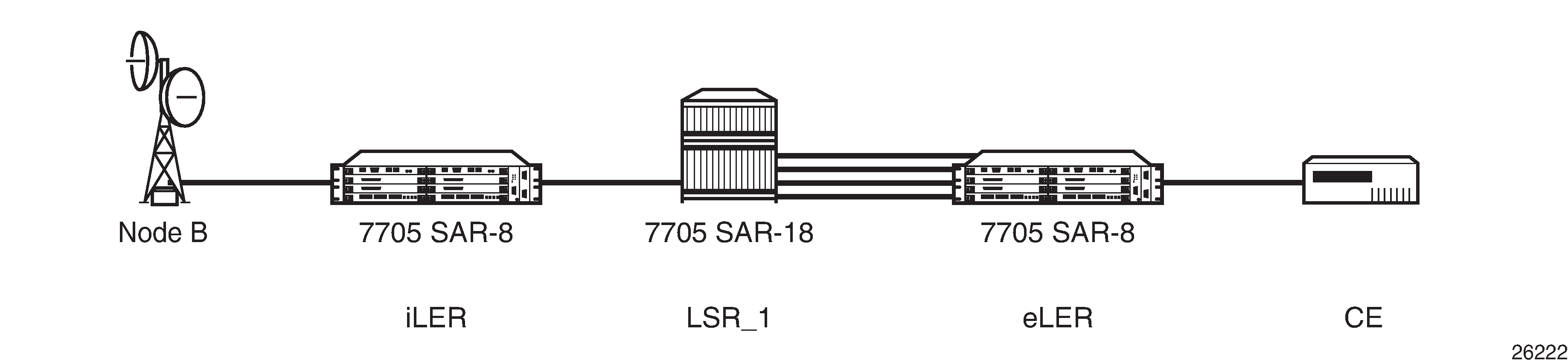 The 7705 SAR can be used as an ingress and egress label edge router (iLER and eLER), and as a transit router. A transit router is also referred to as a label switching router (LSR).