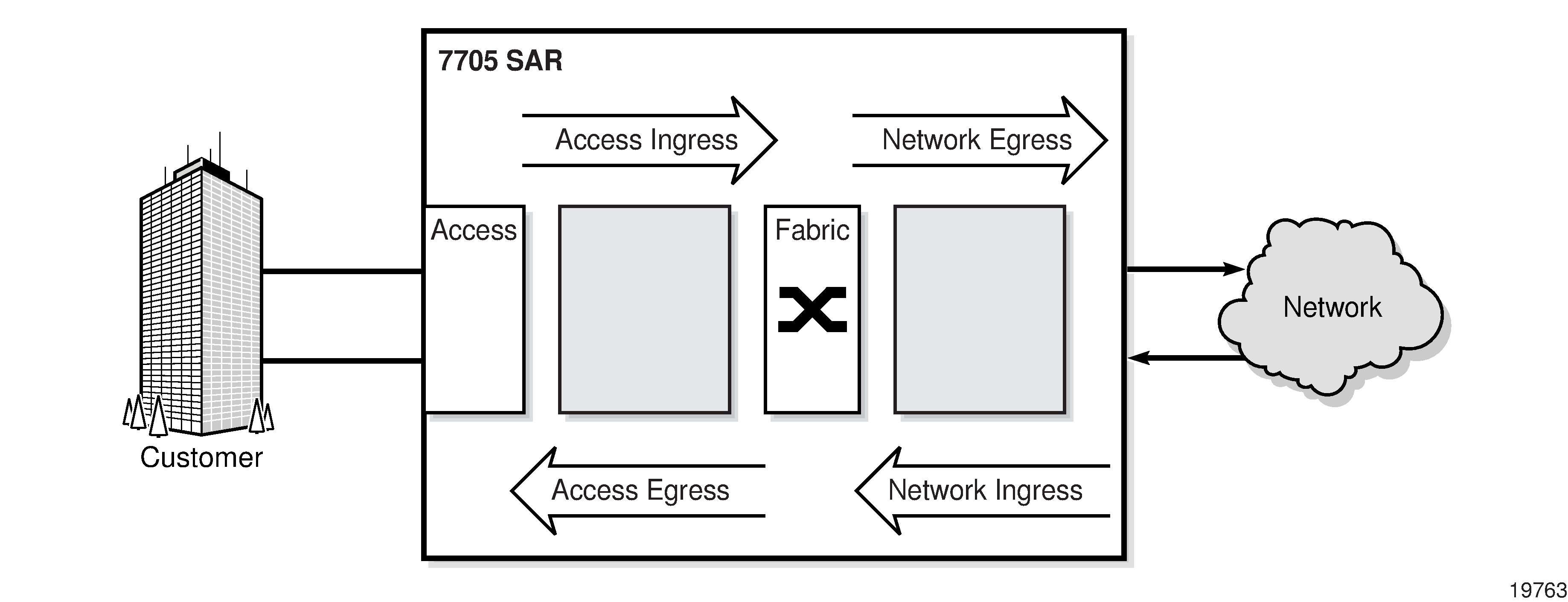 access ingress direction describes packets coming in from customer equipment and switched toward the switch fabric