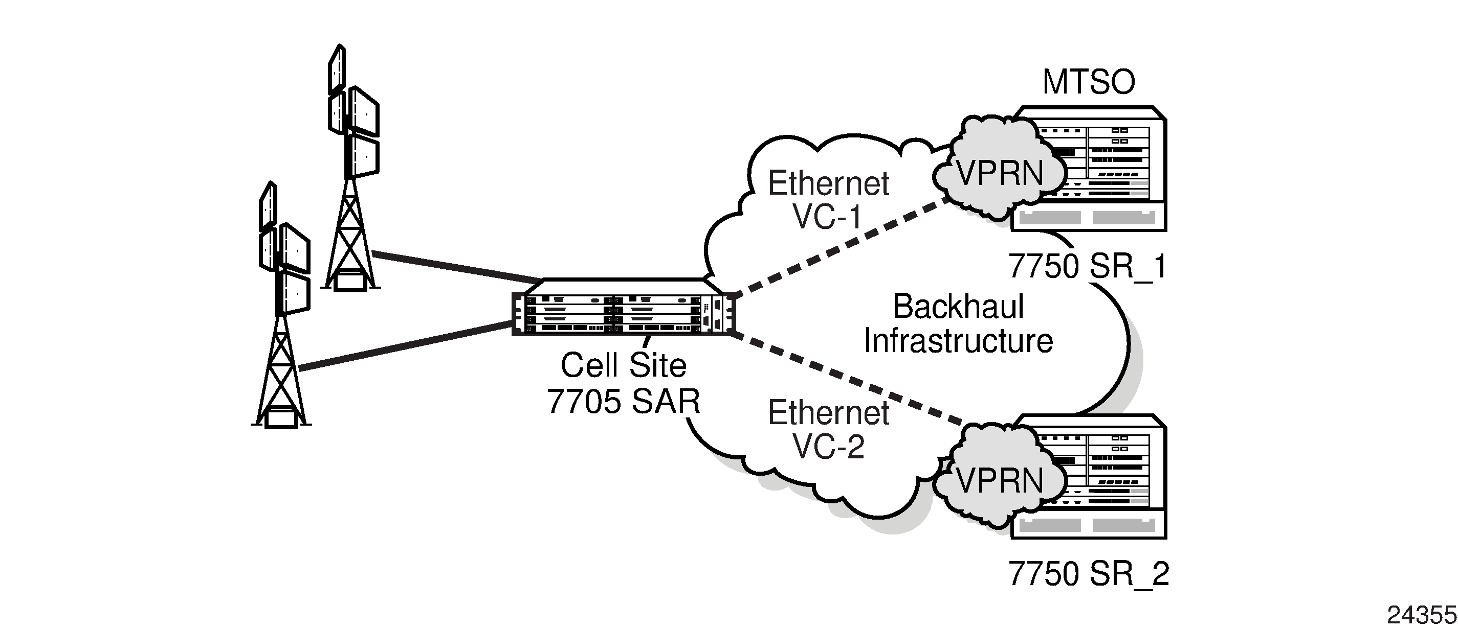 7705 SAR routers use QoS policies to control how QoS is handled at distinct points in the service delivery model within the device. QoS policies act like a template. Once a policy is created, it can be applied to many other similar services and ports. As an example, if there is a group of Node Bs connected to a 7705 SAR node, one QoS policy can be applied to all services of the same type, such as High-Speed Downlink Packet Access (HSDPA) offload services.