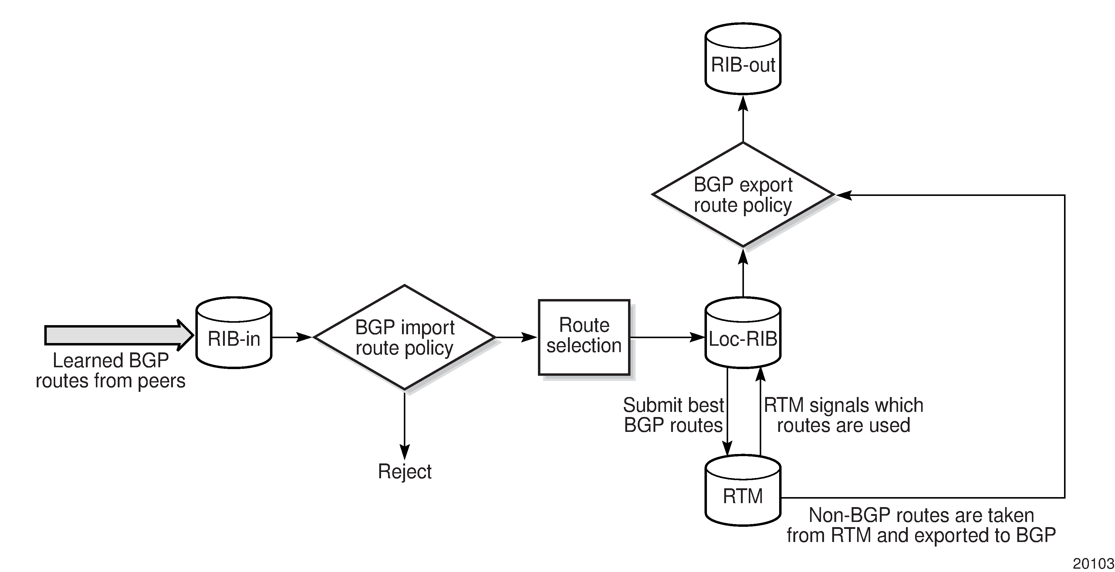 Route policies are used to manage the label database for MPLS and to control entries to the routing table for dynamic routing (see Routing policy and MPLS).