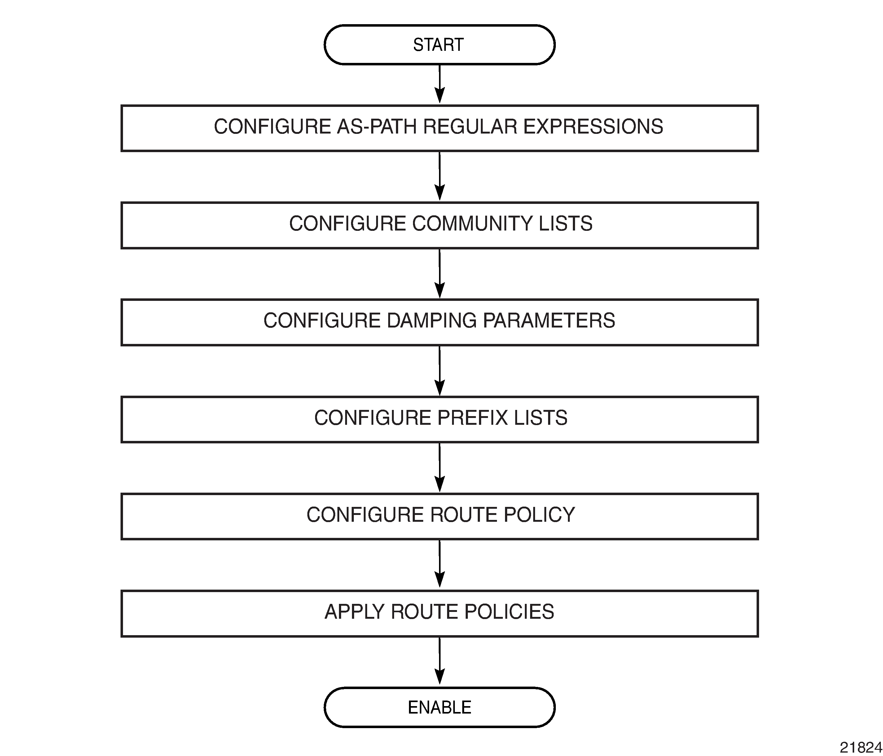 Routing policies control the size and content of the routing tables, the routes that are advertised, and the best route to take to reach a destination. Careful planning is essential to implement route policies that can affect the flow of routing information throughout the network. Before configuring and applying a route policy, operators should develop an overall plan and strategy to accomplish their intended routing actions.