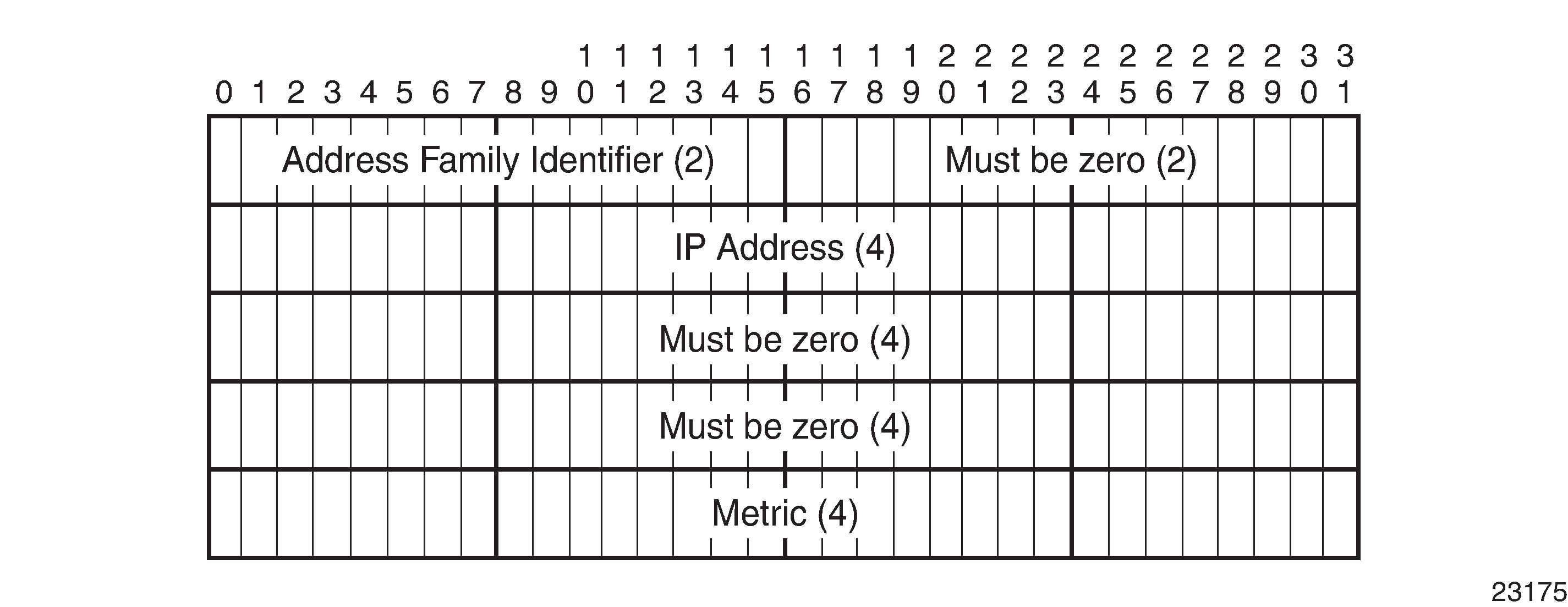Address family identifier (AFI) – the type of address. RIP can carry routing information for several different protocols. Each entry in this field has an AFI to indicate the type of address being specified. The IP AFI is 2.