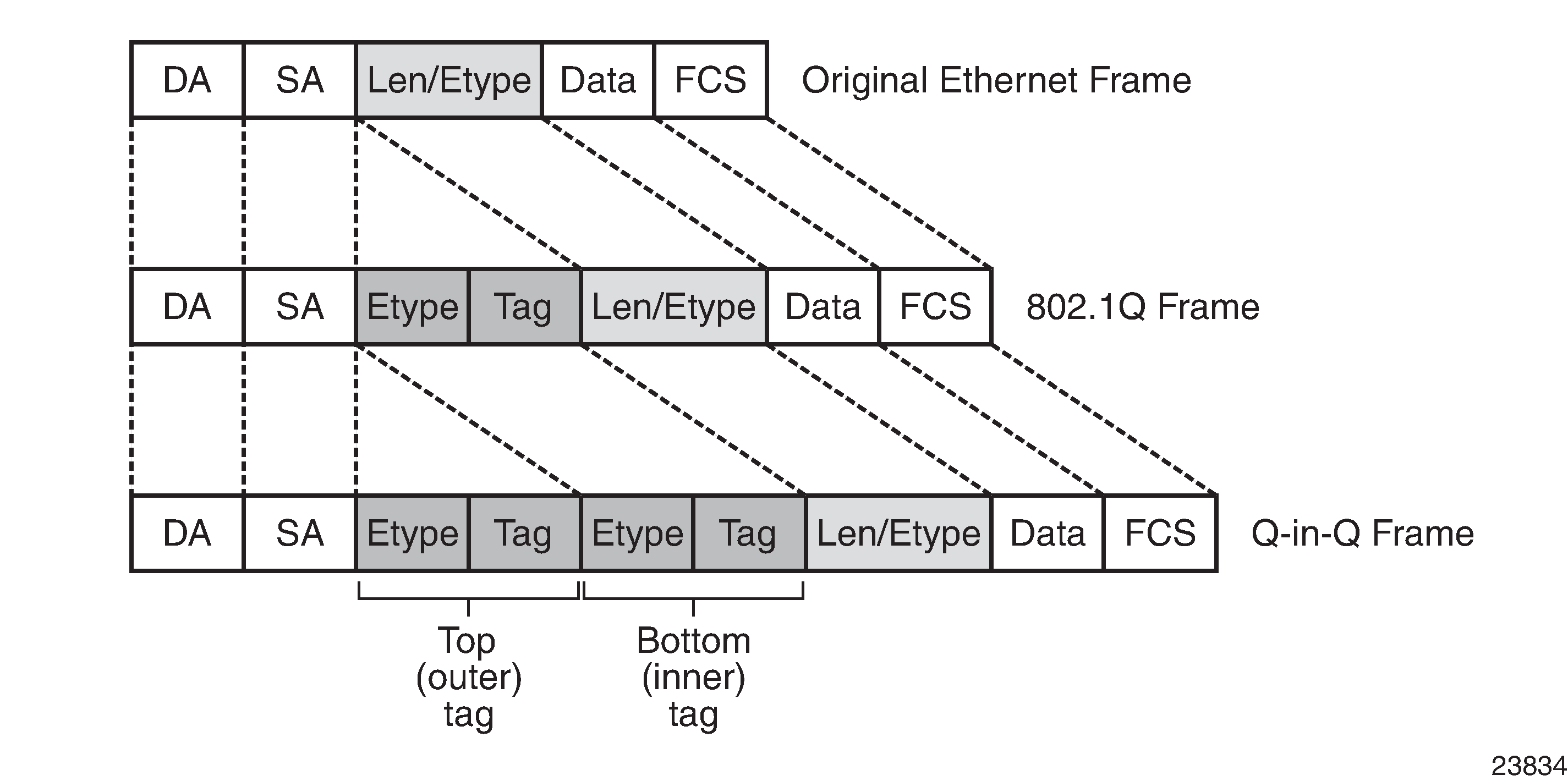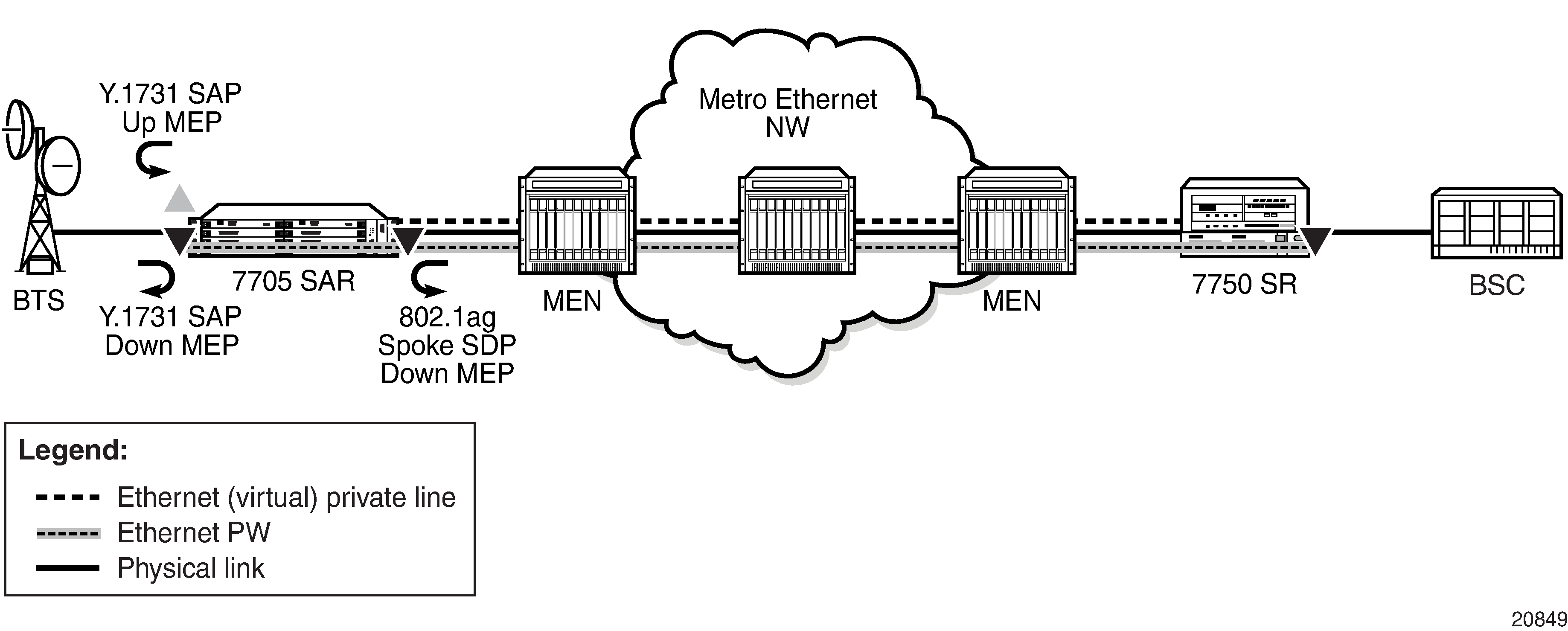 Traffic encapsulation occurs at the SAP and SDP. The SAP encapsulation types are SONET/SDH, Ethernet, and TDM. The SDP encapsulation types are MPLS, GRE, and IP. For information about SAP encapsulation types, see SAP encapsulation types and identifiers. For information about SDP encapsulation types, see SDP encapsulation types.