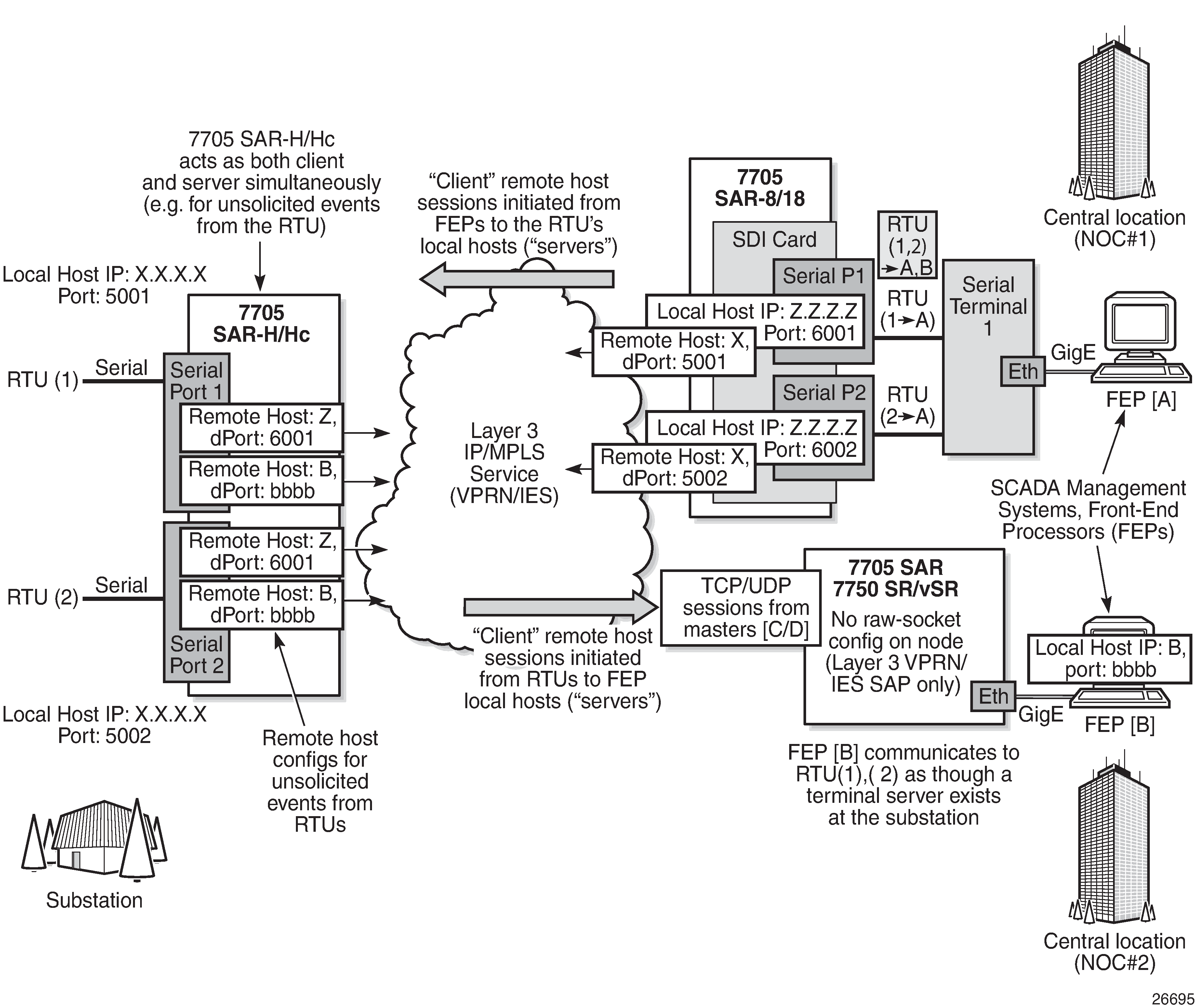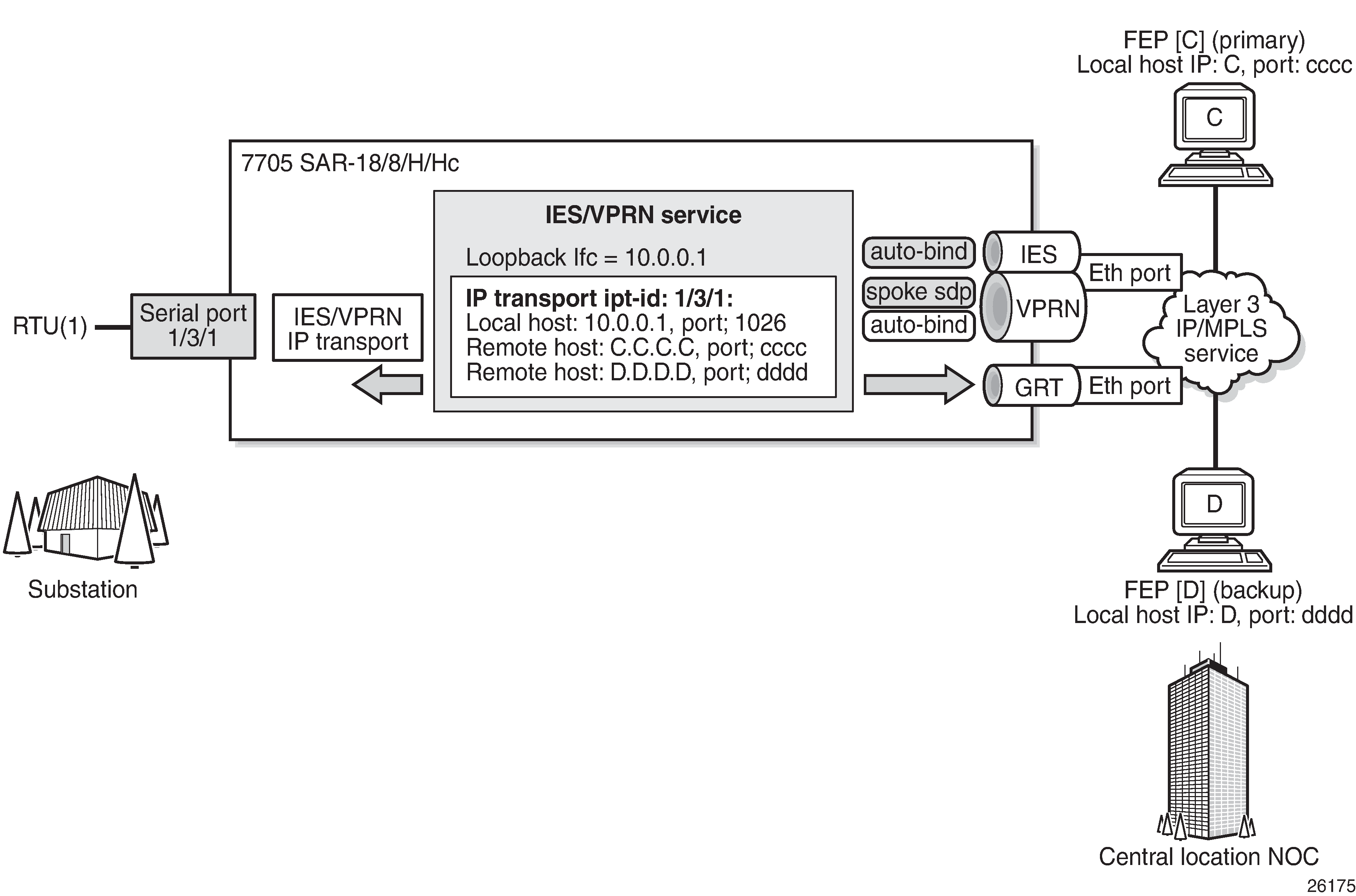 SDPs are configured on each participating 7705 SAR or service router (for example, a 7750 SR), specifying the address of the destination router, such as another 7705 SAR or service router. After SDPs are created, they are bound to a specific service. The binding process is needed to associate the far-end devices to the service; otherwise, far-end devices are not able to participate in the service.