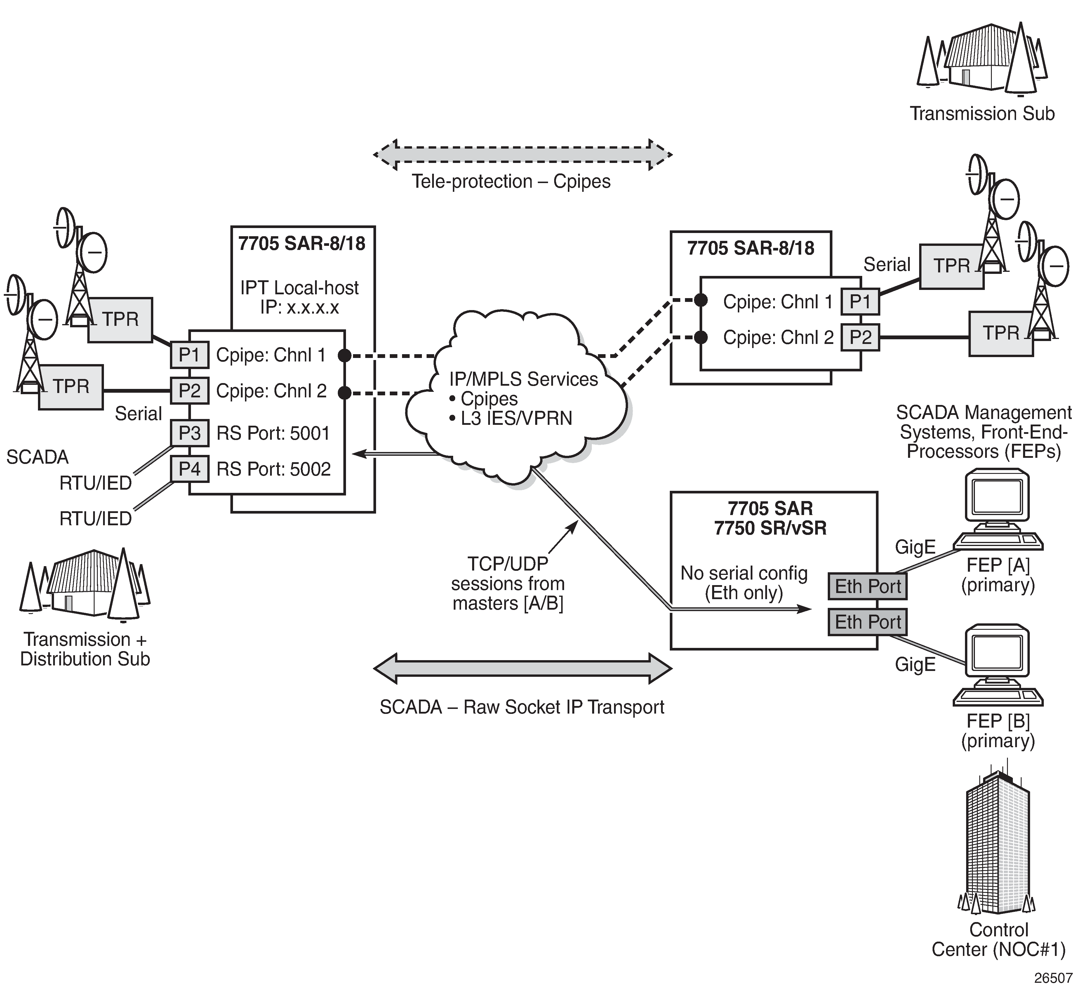 IP interworking VLL (Ipipe) – a PWE3 IP service between two hosts connected by any combination of point-to-point access circuits. IP interworking VLLs can operate over MPLS or GRE networks. Some typical examples are Ethernet SAP to Ethernet SAP, Ethernet SAP to MLPPP SAP, Ethernet SAP to LAG SAP, FR SAP to Ethernet SAP, or cHDLC SAP to Ethernet SAP. See IP interworking VLL (Ipipe) services.