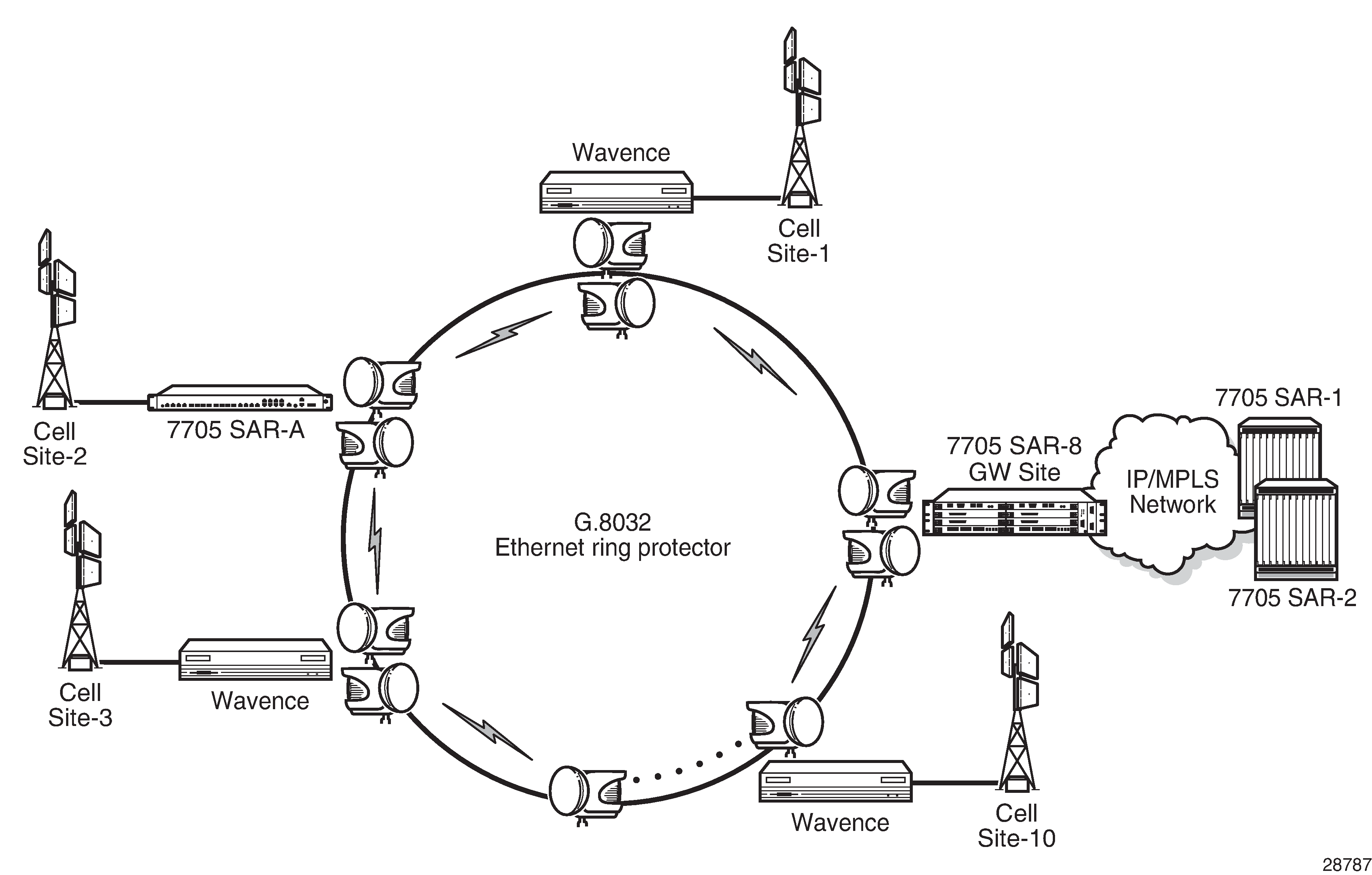The 7705 SAR routers are deployed at the provider edge (PE). Services are provisioned on the 7705 SAR and other network equipment in order to facilitate the transport of telecommunications data across an IP/MPLS provider’s core network. The data is formatted so that it can be transported in encapsulation tunnels created using generic routing encapsulation (GRE), IP encapsulation, or MPLS label switched paths (LSPs).