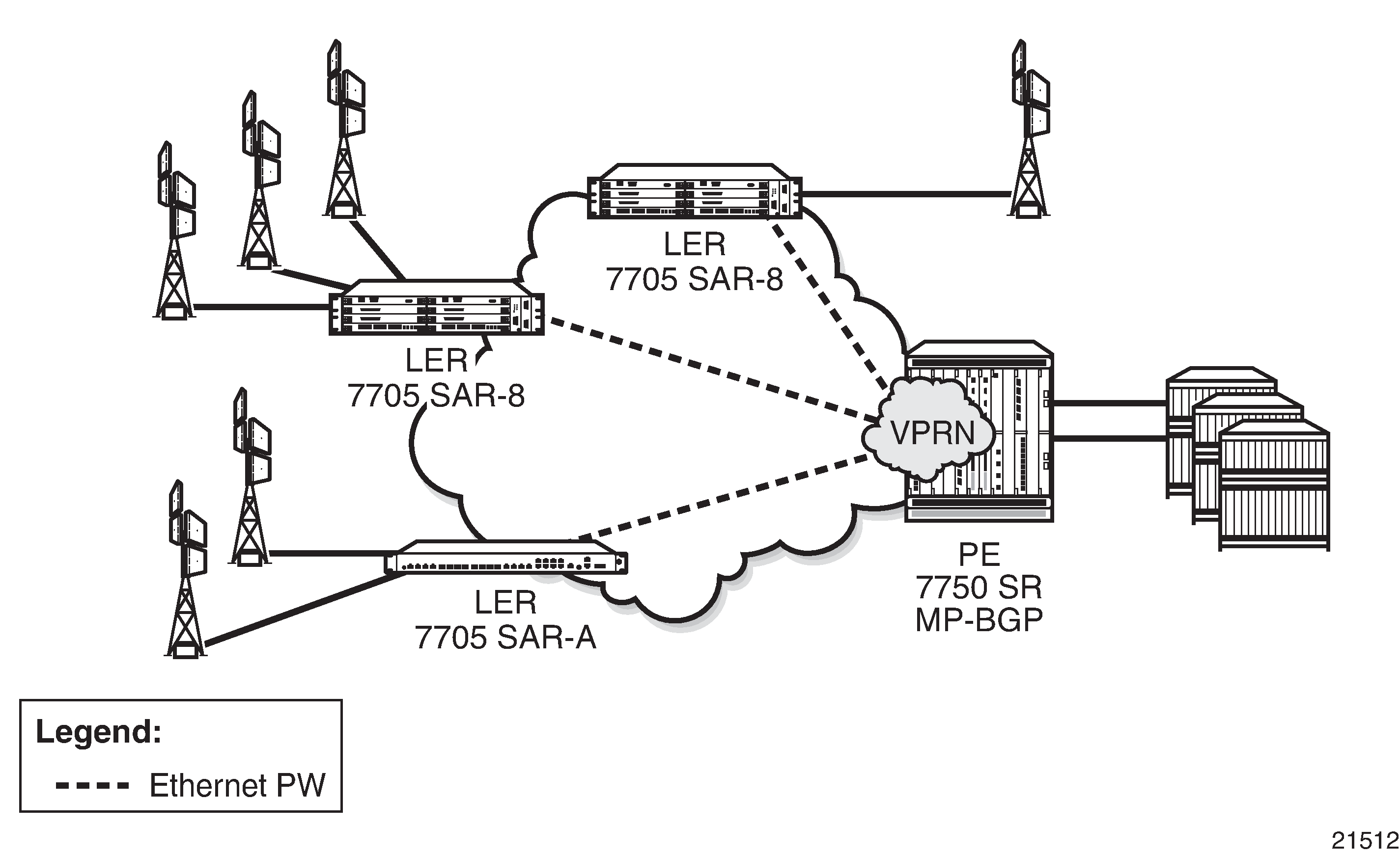 The 7705 SAR can be used in deployments where the uplink bandwidth capacity and requirements are considerably less than if the router is used for fixed or mobile backhaul applications. For example, the 7705 SAR can be used to direct traffic from multiple individual homes for applications such as smart meter aggregation or relay connectivity. Connecting to end systems such as smart meters or relays requires uplink bandwidth capacity in terms of hundreds of kilobits per second instead of hundreds of megabits per second.