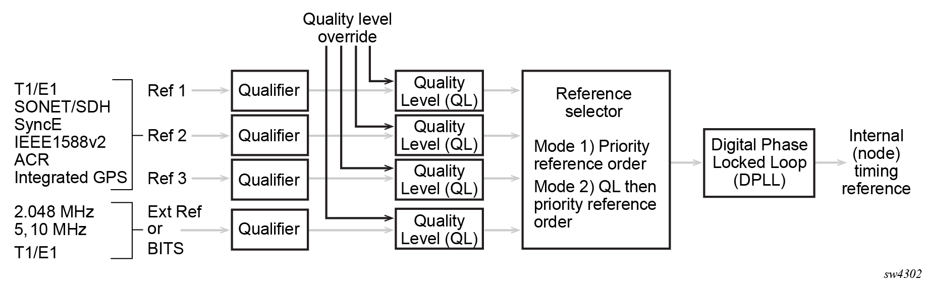 When the debug force-reference command is executed, the current system synchronous timing output is immediately referenced from the specified reference input. If the specified input is not available (shutdown), or in a disqualified state, the timing output will enter the holdover state based on the previous input reference.