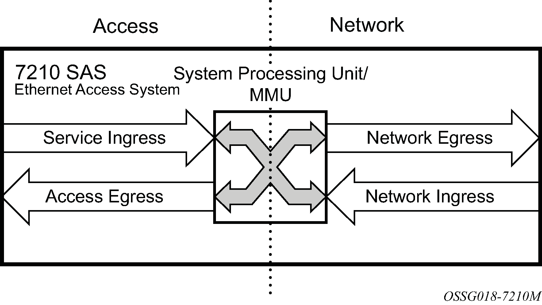 The 7210 SAS devices are designed with ingress and egress QoS mechanisms to support multiple services per physical port. The 7210 SAS devices are extensive and flexible capabilities to classify, police, queue, shape, and mark traffic.