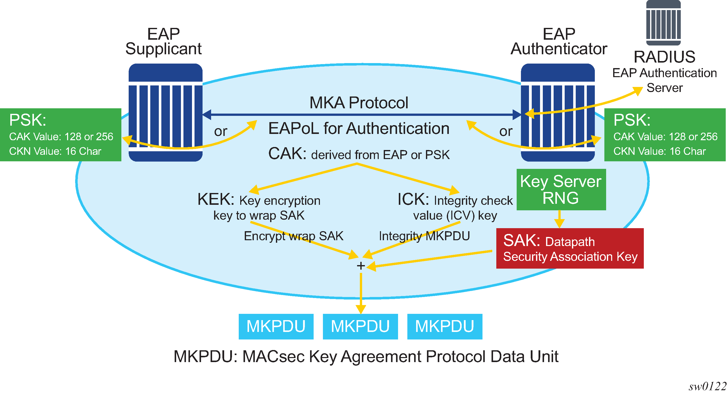 - Media Access Control Security (MACsec) is supported only on the 7210 SAS-K 2F6C4T ETR, 7210 SAS-K 3SFP+ 8C, and 7210 SAS-Dxp 24p.