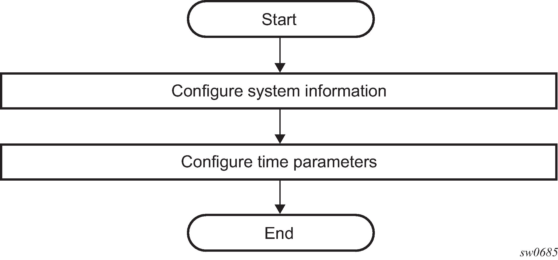 The 7210 SAS routers are equipped with a real-time system clock for time-keeping purposes. When set, the system clock always operates on Coordinated Universal Time (UTC), but the software has options for local time translation and system clock synchronization. System time parameters include Time zones, Network Time Protocol (NTP), SNTP time synchronization, and CRON.