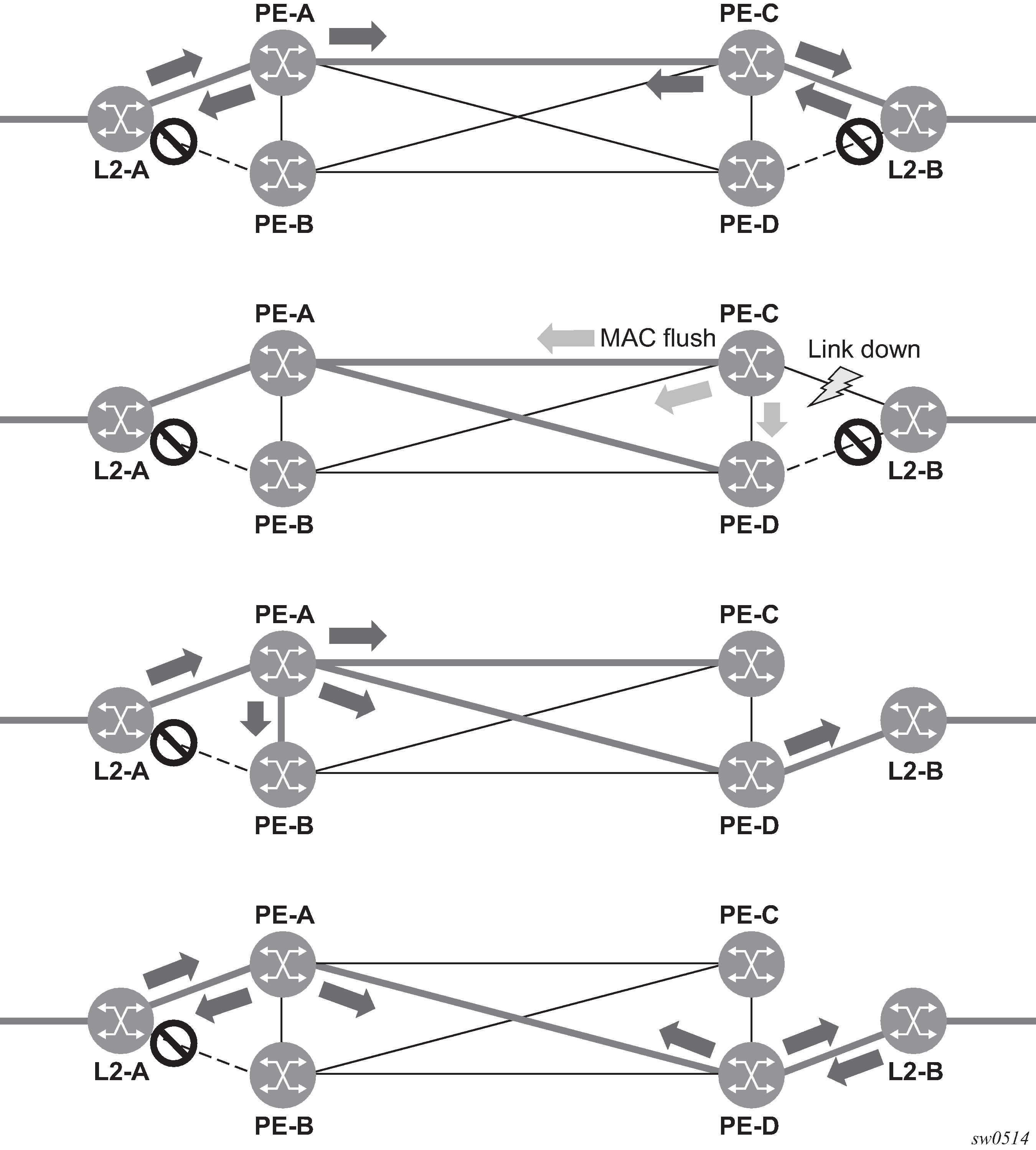 Enabling MAC learning over tunnel and access ports (see VPLS MAC learning and packet forwarding).