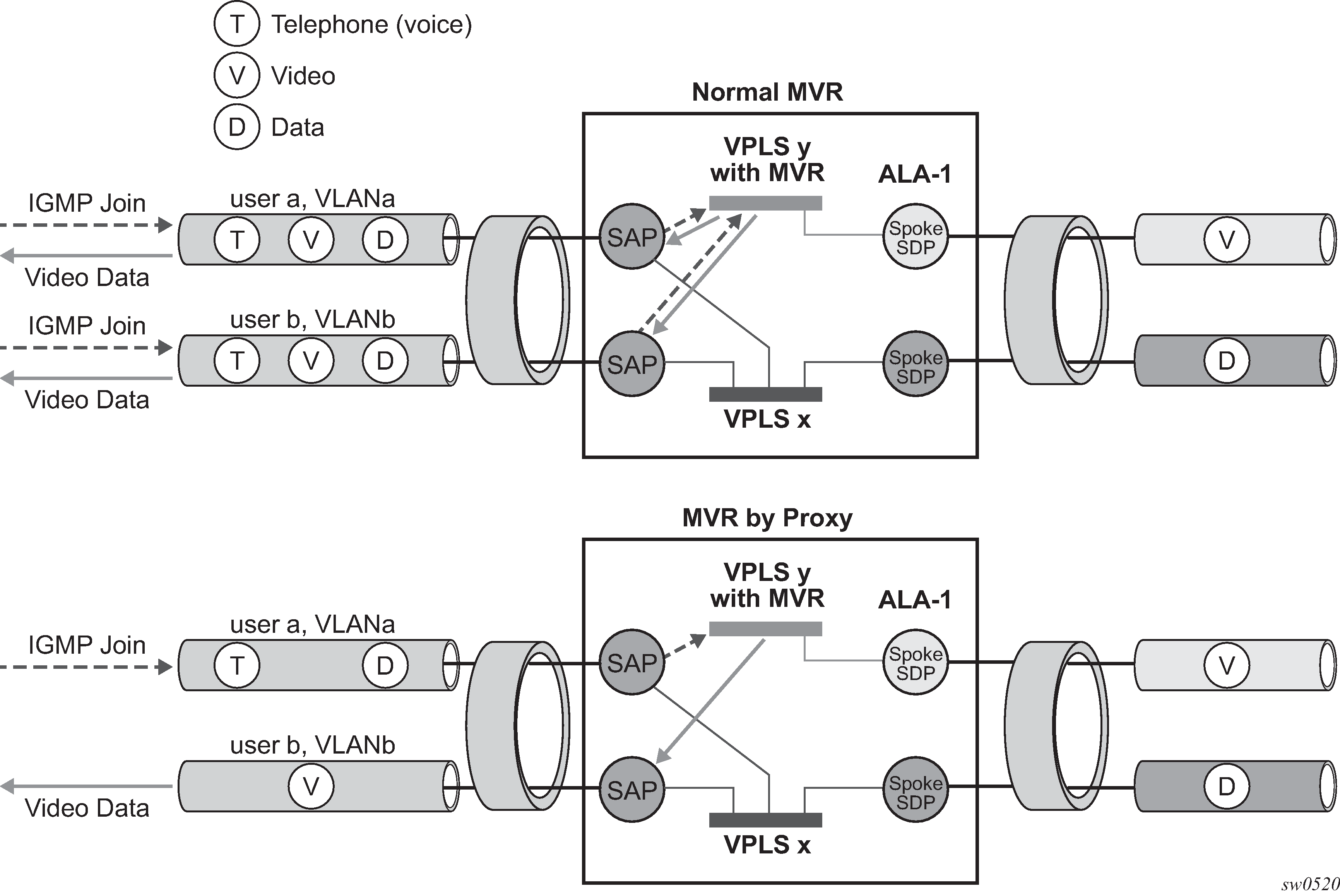 IGMP snooping on a per-SAP and SDP basis.