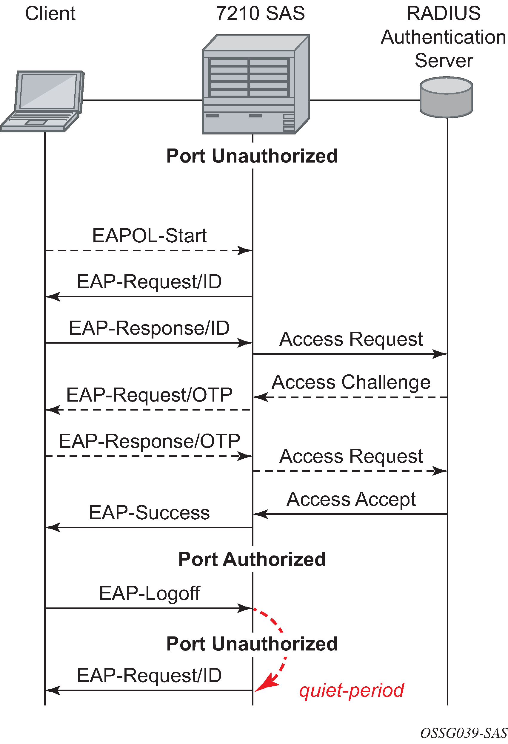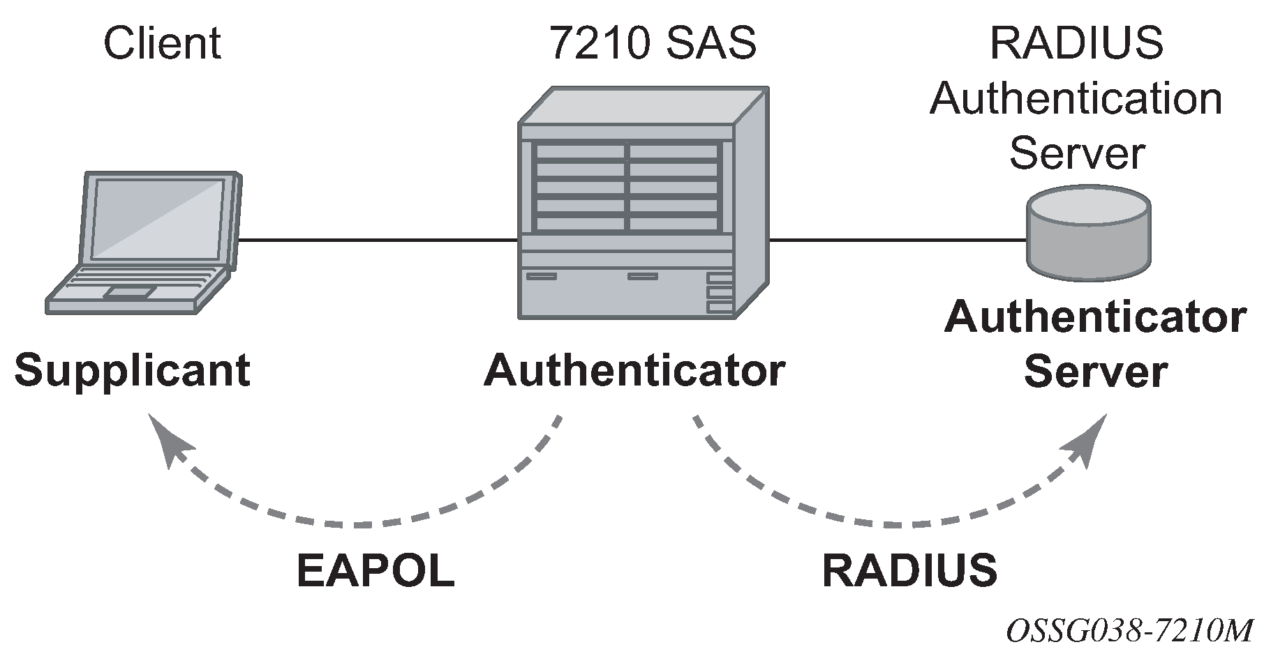 The 7210 SAS supports network access control of client devices (PCs, STBs, and others) on an Ethernet network in accordance with the IEEE 802.1x standard (Extensible Authentication Protocol (EAP) over a LAN network or EAPOL).