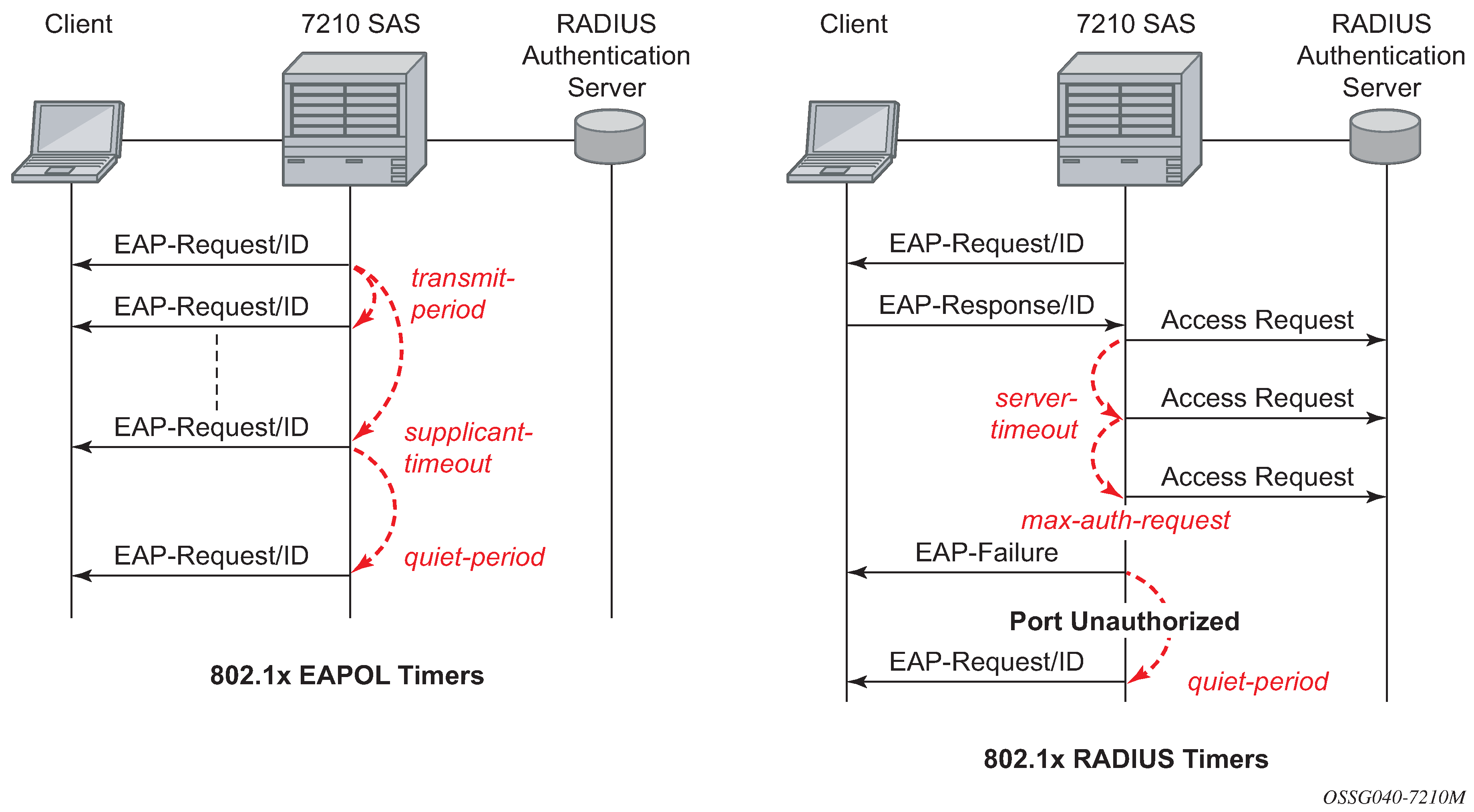 The following figure shows sample EAPOL and RADIUS timers on the 7210 SAS.