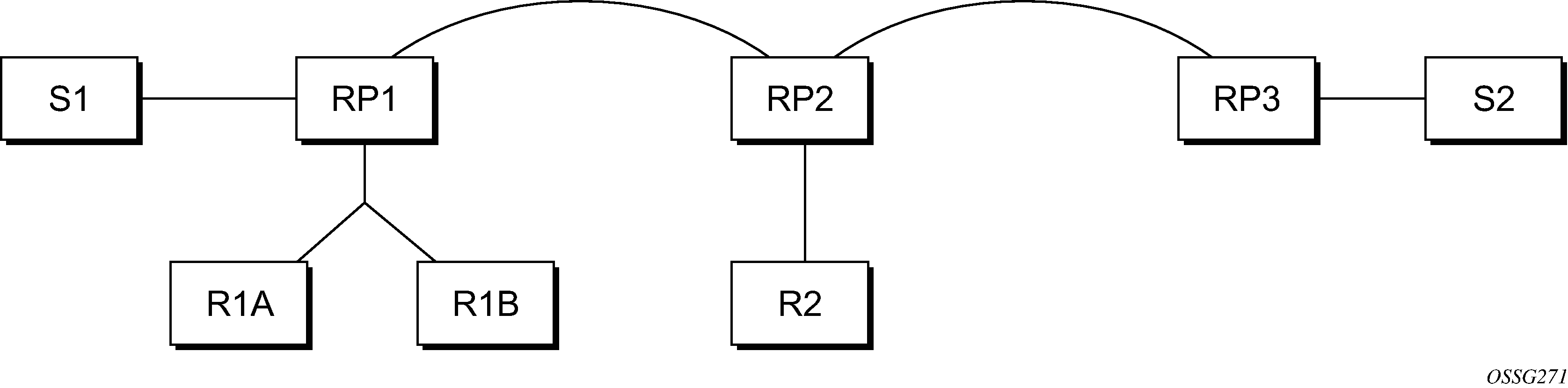 By now, the receiver is receiving traffic from S along the SPT between the receiver and S. In addition, the RP is receiving the traffic from S, but this traffic is no longer reaching the receiver along the RP tree. As far as the receiver is concerned, this is the final distribution tree.