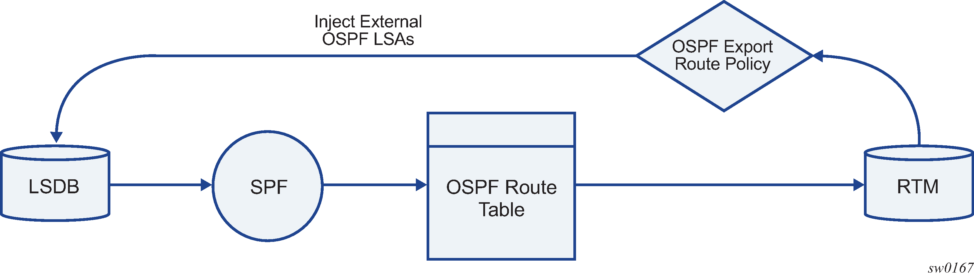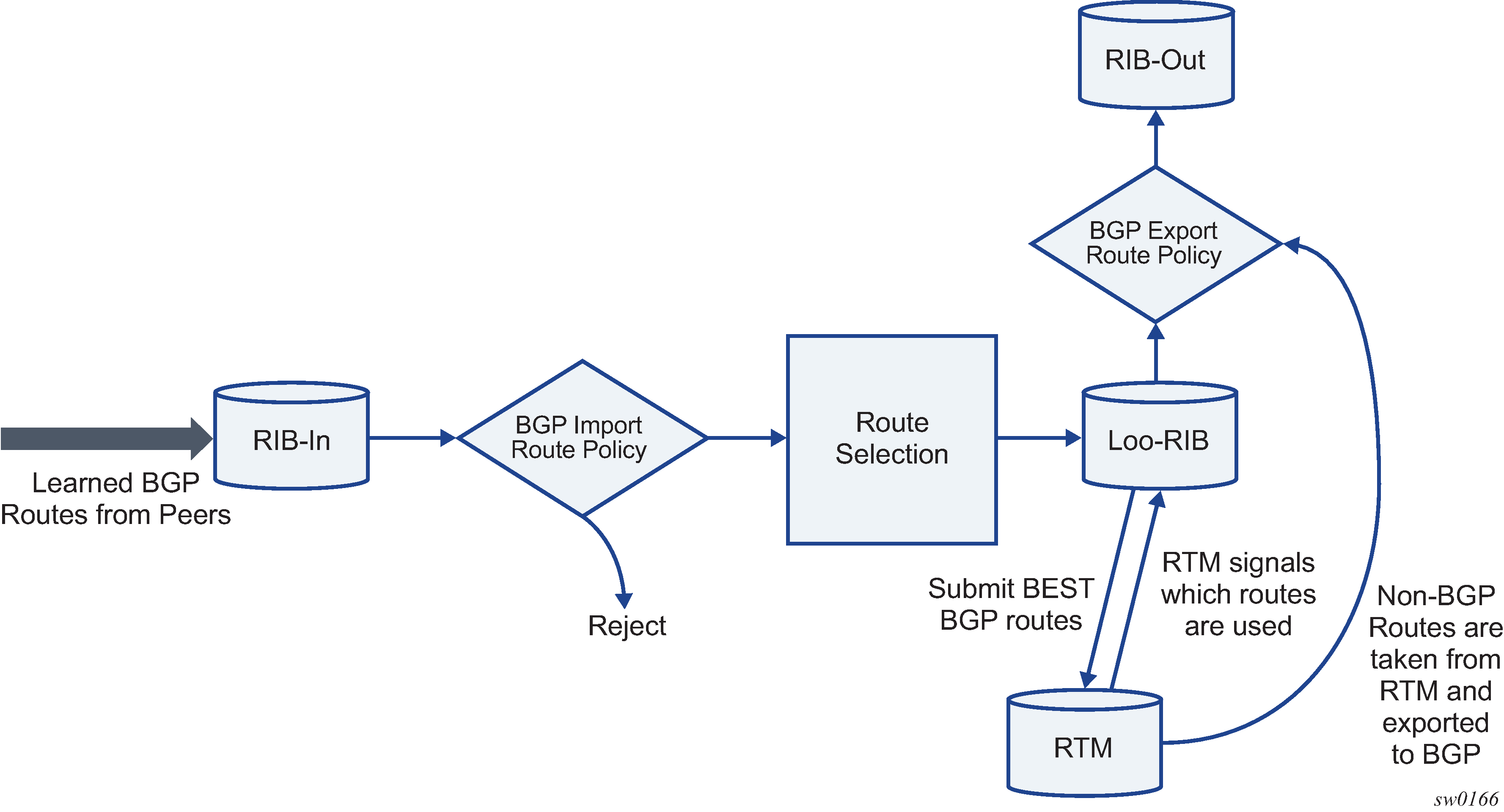 The Nokia 7210 SAS supports two databases for routing information. The routing database is composed of the routing information learned by the routing protocols. The forwarding database is composed of the routes actually used to forward traffic through a router. In addition, link state databases are maintained by interior gateway protocols (IGPs) such as IS-IS and OSPF.