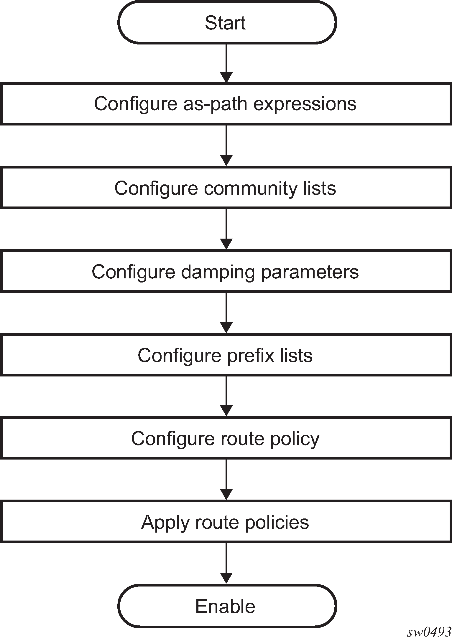 Routing policies control the size and content of the routing tables, the routes that are advertised, and the best route to take to reach a destination. Careful planning is essential to implement route policies that can affect the flow of routing information or packets in and traversing through the router. Before configuring and applying a route policy, develop an overall plan and strategy to accomplish your intended routing actions.