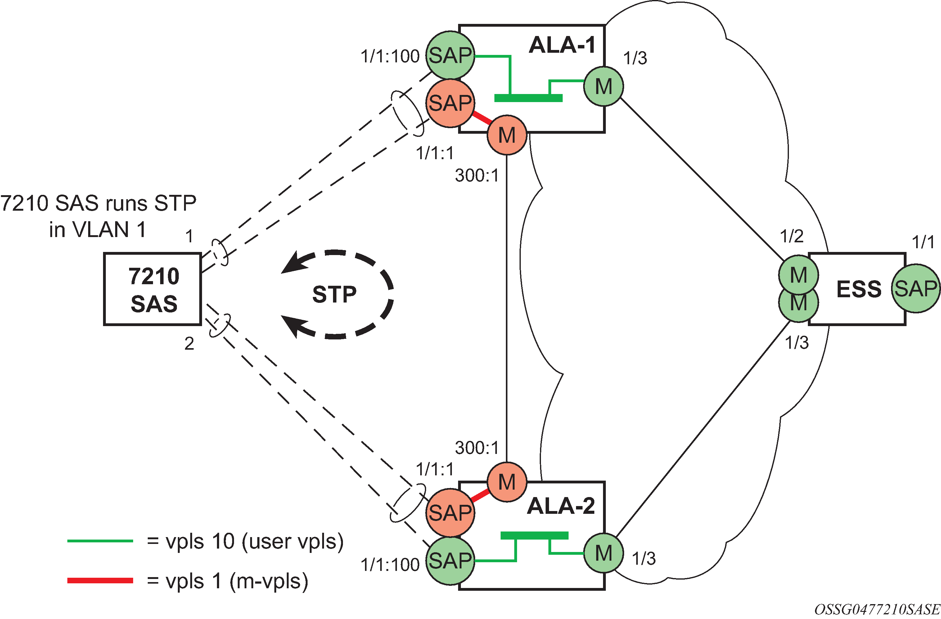 Virtual Private LAN Service (VPLS) is a class of virtual private network service that allows the connection of multiple sites in a single bridged domain over a provider-managed IP/MPLS network. The customer sites in a VPLS instance appear to be on the same LAN, regardless of their location. VPLS uses an Ethernet interface on the customer-facing (access) side which simplifies the LAN/WAN boundary and allows for rapid and flexible service provisioning. The 7210 SAS supports provisioning of access or uplink spokes to connect to the provider edge IP/MPLS routers.