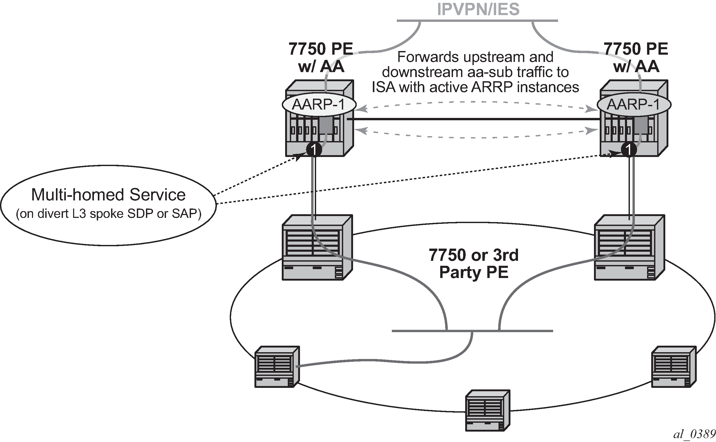 Multiple deployment models are supported for integrating AA in the various subscriber edge and VPN PE network topologies (AA deployment topologies). In all cases, AA can be added by in-service upgrade to the installed base of equipment instead of needing to deploy and integrate a whole new set of equipment and vendors into the network for Layer 4 to Layer 7 awareness.