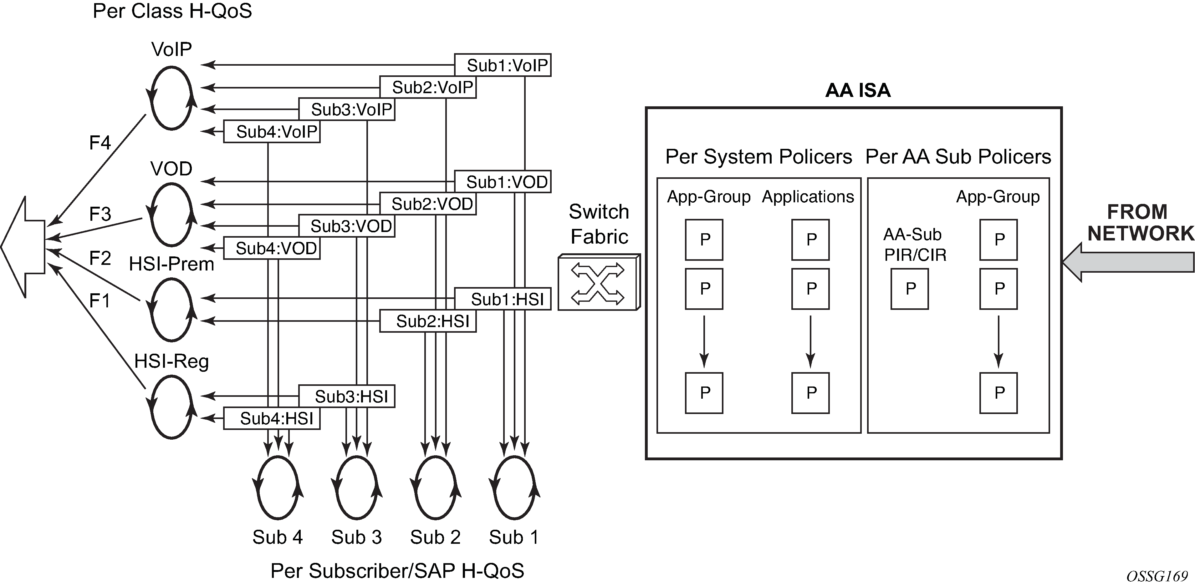 AA enables per AA subscriber (a residential subscriber, or a Layer 2 or Layer 3 SAP or spoke SDP), per application policy for all or a subset of AA subscriber's applications. This provides the following capabilities: