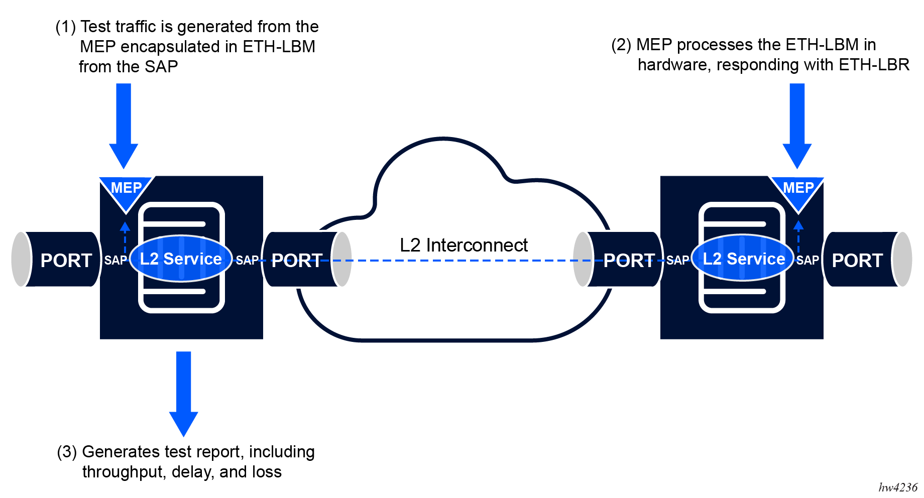 configuration of a rate value and option to measure performance metrics. The testhead OAM tool generates traffic up to the specified rate and measures service performance metrics such as delay, delay variation, and loss.