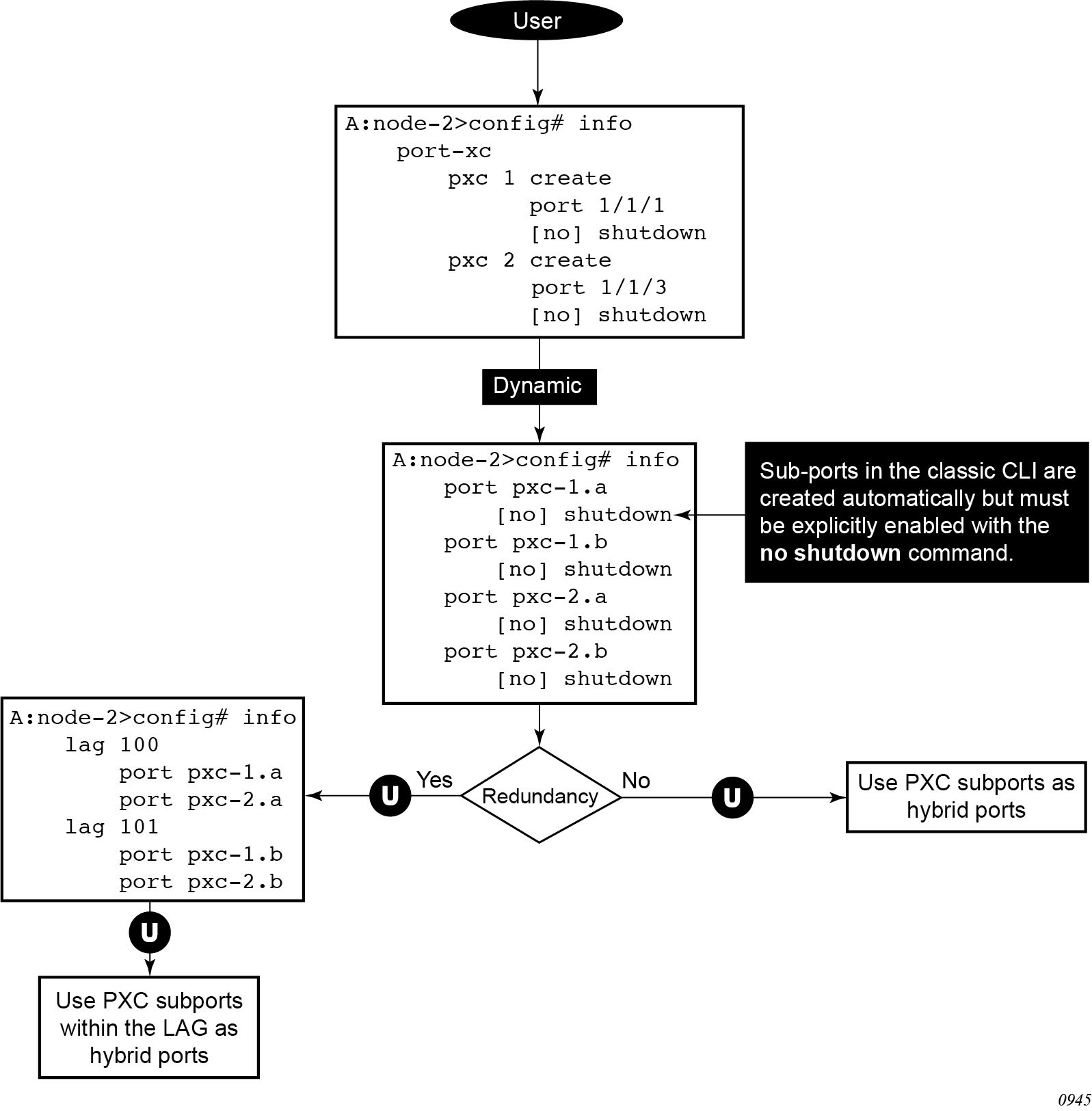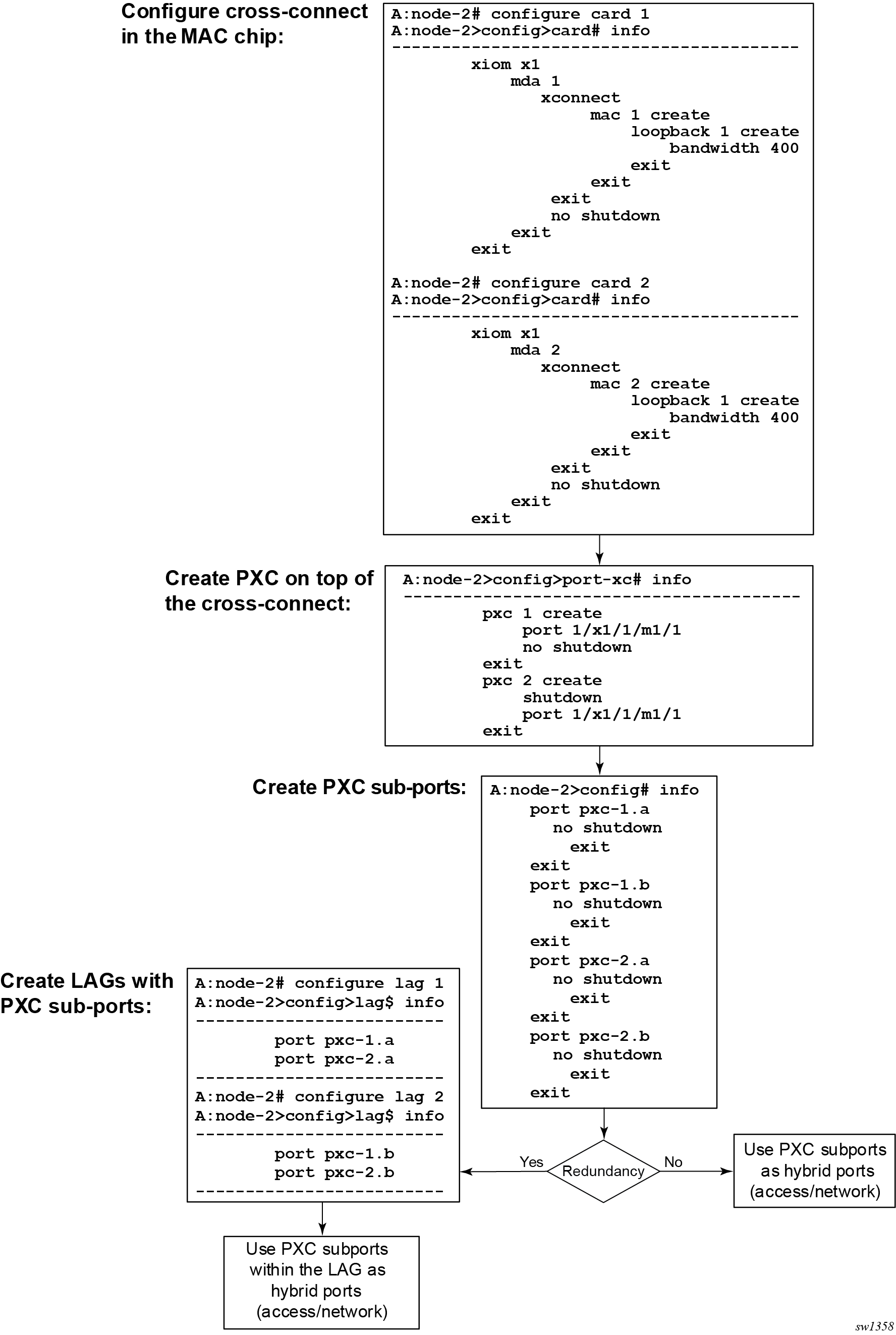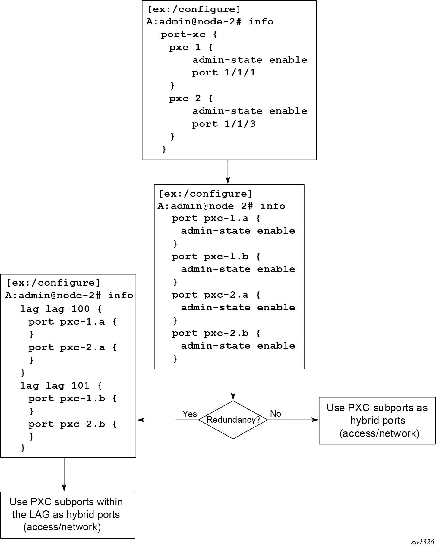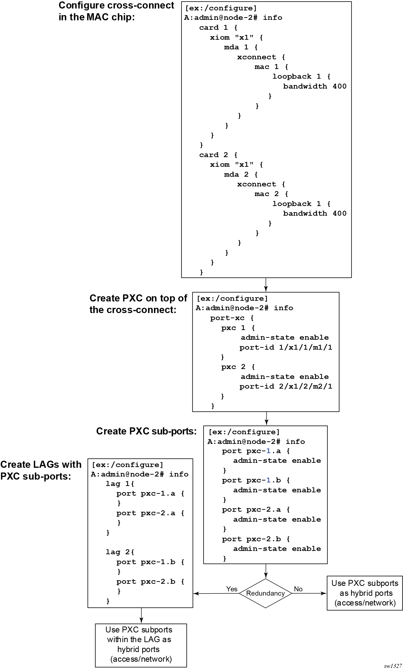 See the "Overview" section of "Port Cross-Connect (PXC)" in the 7450 ESS, 7750 SR, 7950 XRS, and VSR Interface Configuration Advanced Configuration Guide for MD CLI for information about advanced configurations.