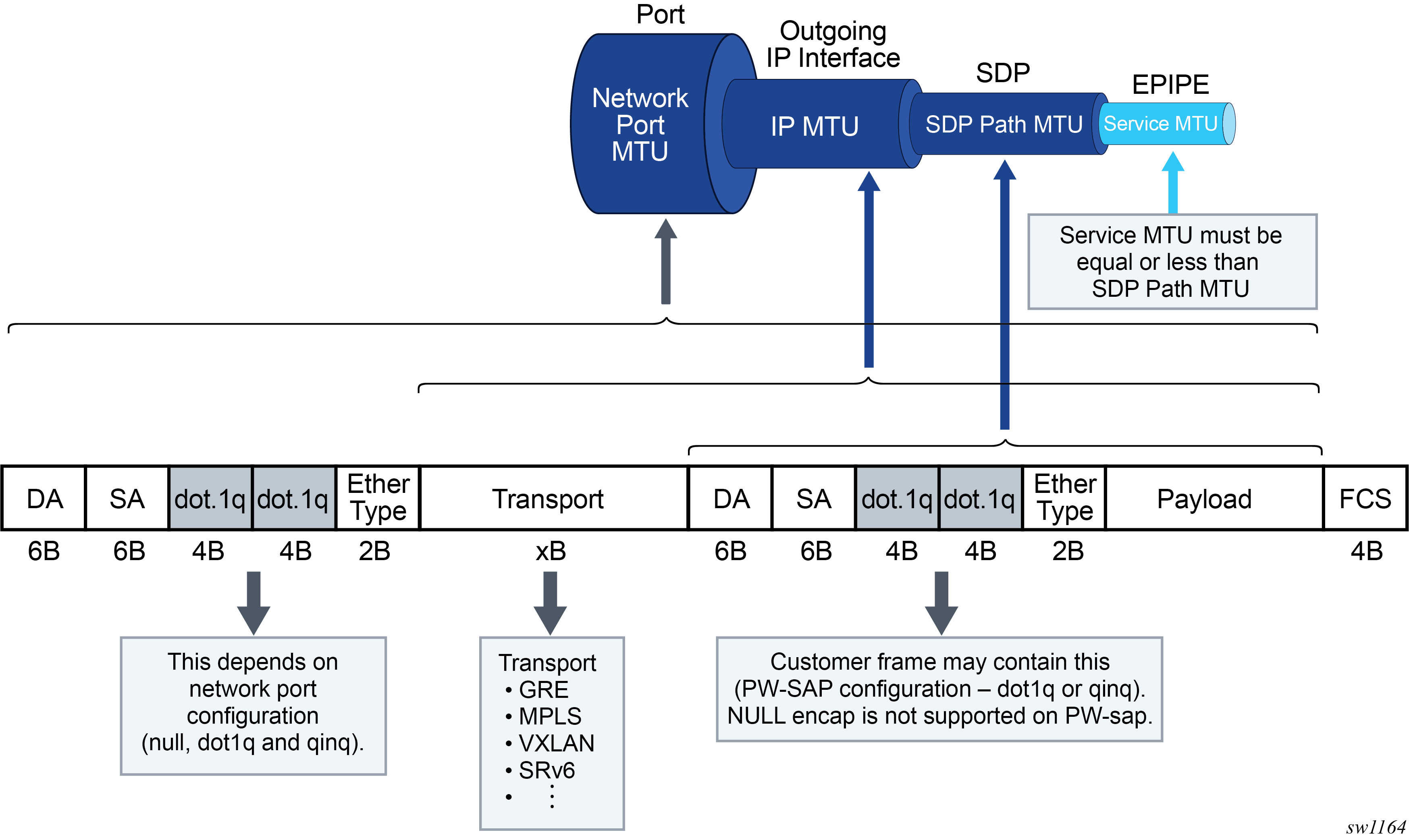 Port MTU represents the maximum frame size on the outgoing physical port.
