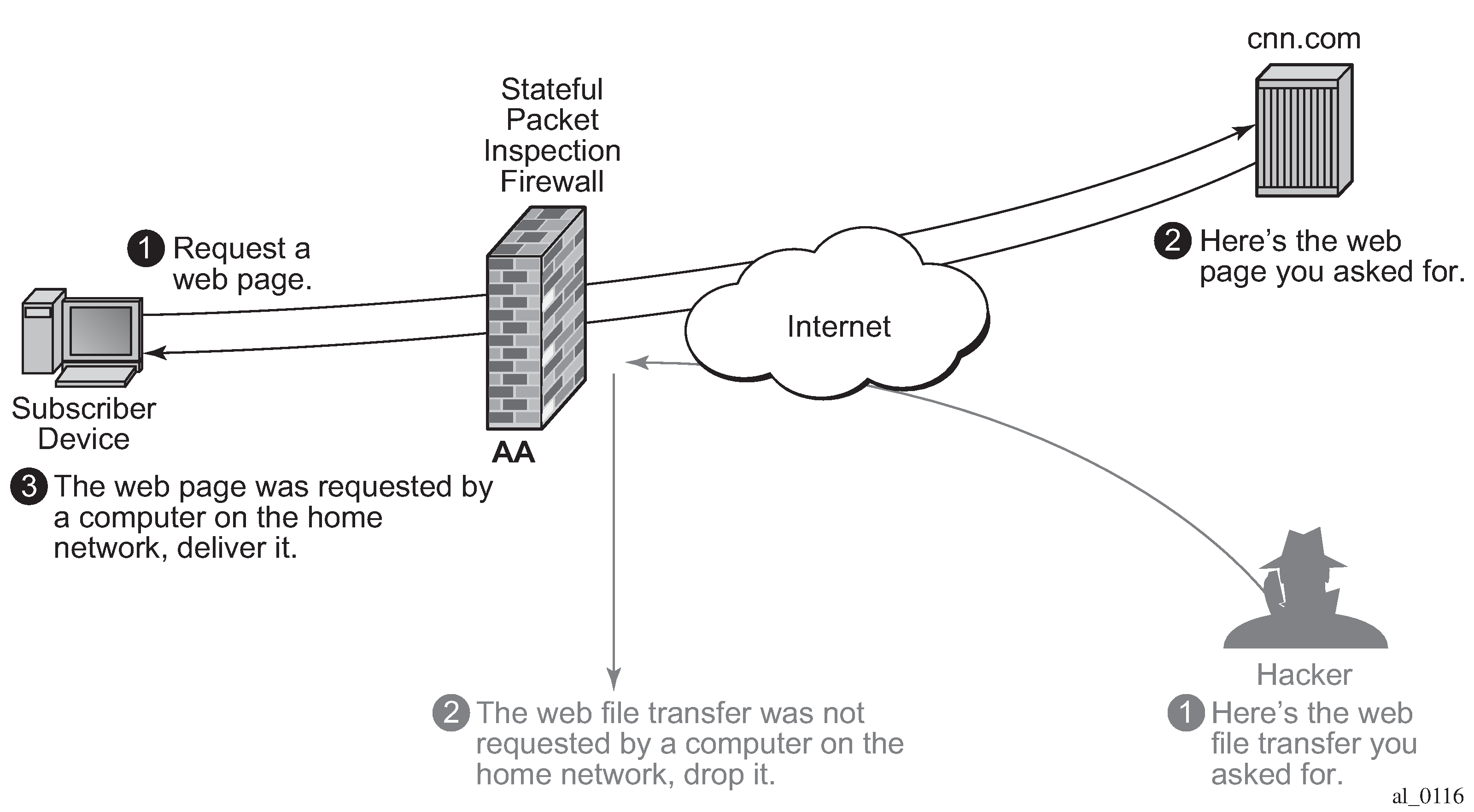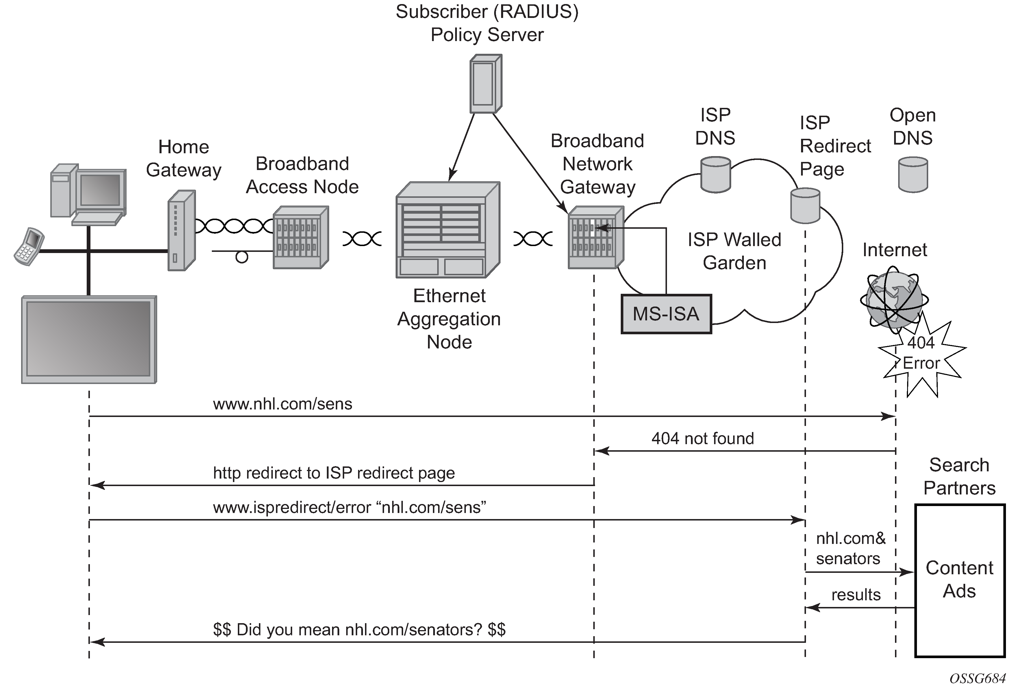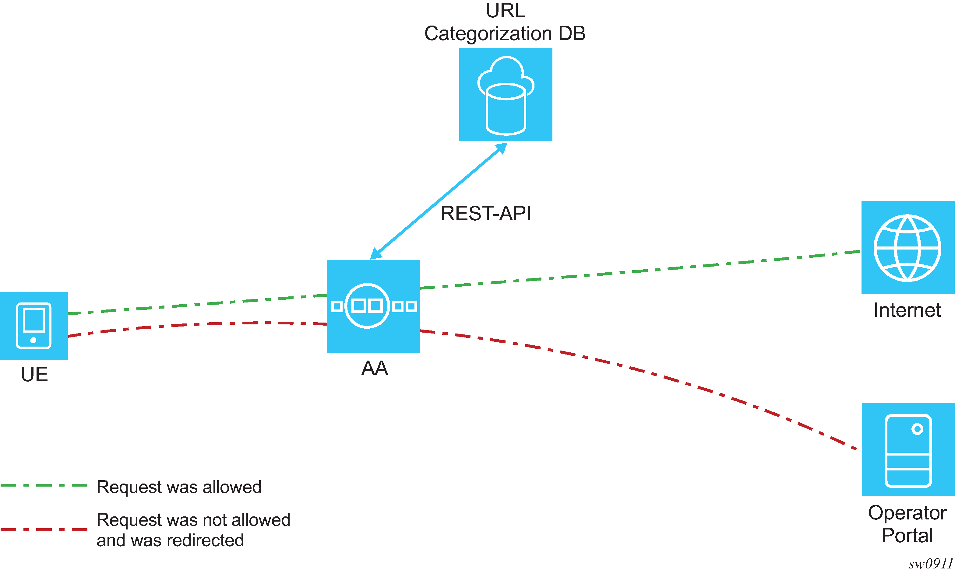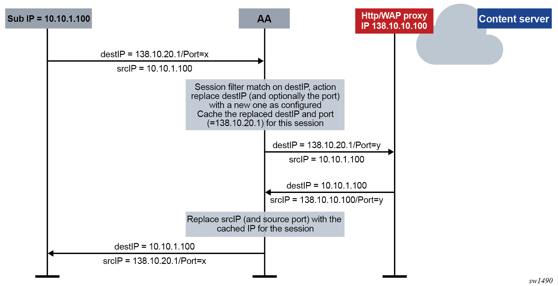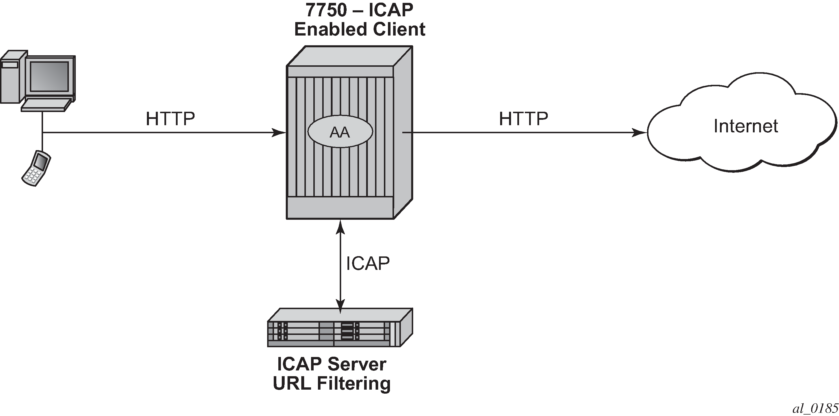 Integrating Layer 4 to Layer 7 application policy with the 7750 SR or 7450 ESS subscriber edge policy context is the primary solution to address both residential broadband edge and Layer 2 or Layer 3 application aware business VPN. Placement of Layer 4 to Layer 7 analysis at the distributed subscriber edge policy point simplifies AA deployments in the following ways: