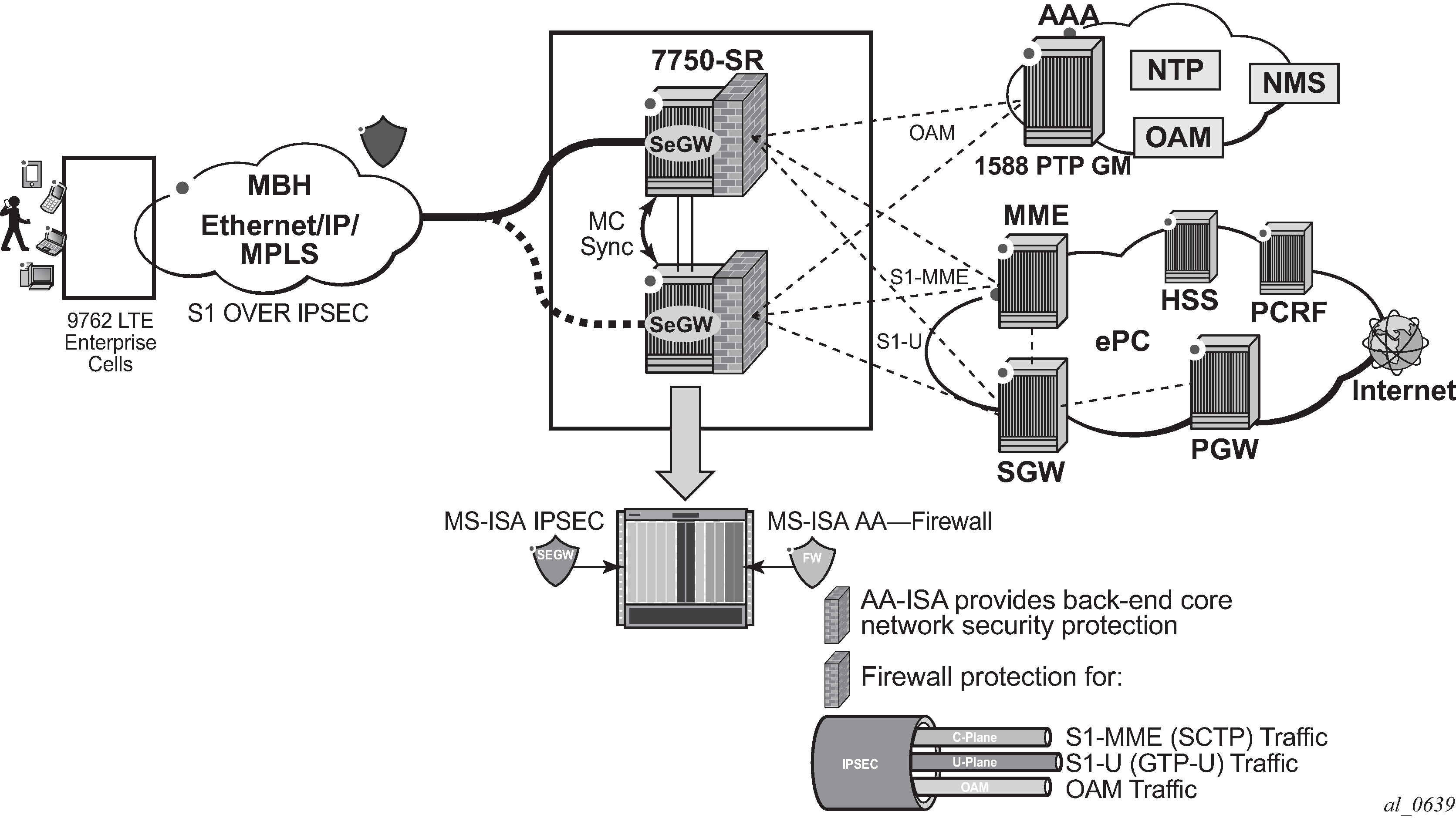 SeGW integration provides firewall protection for NMS, MME and SGW.