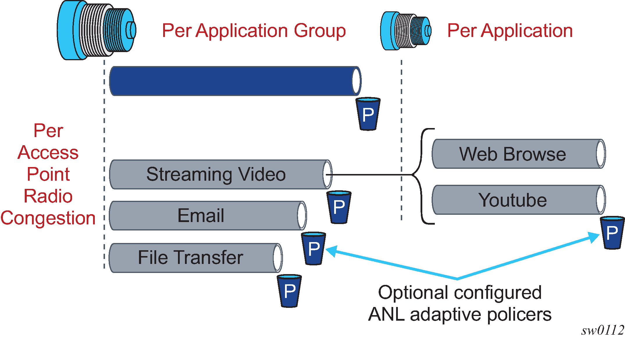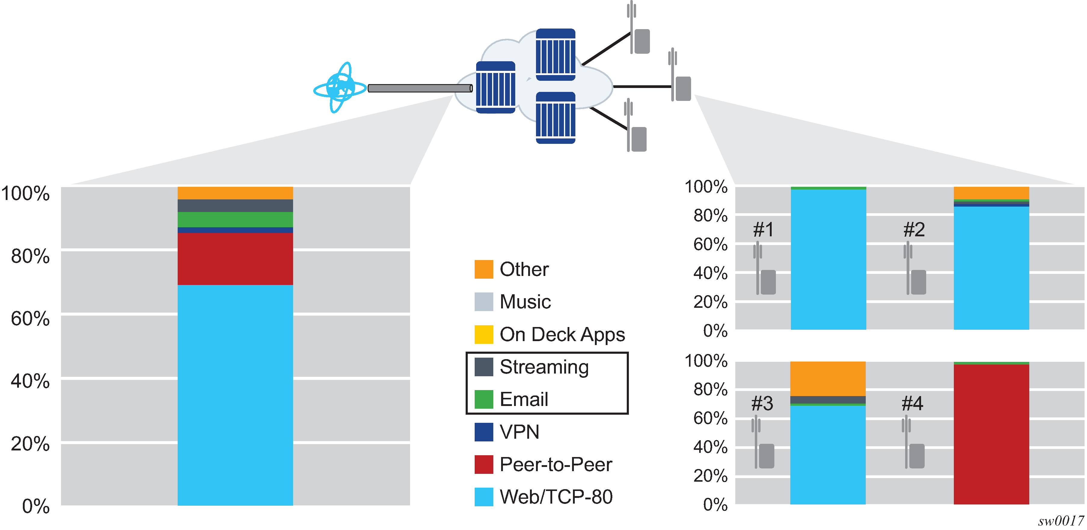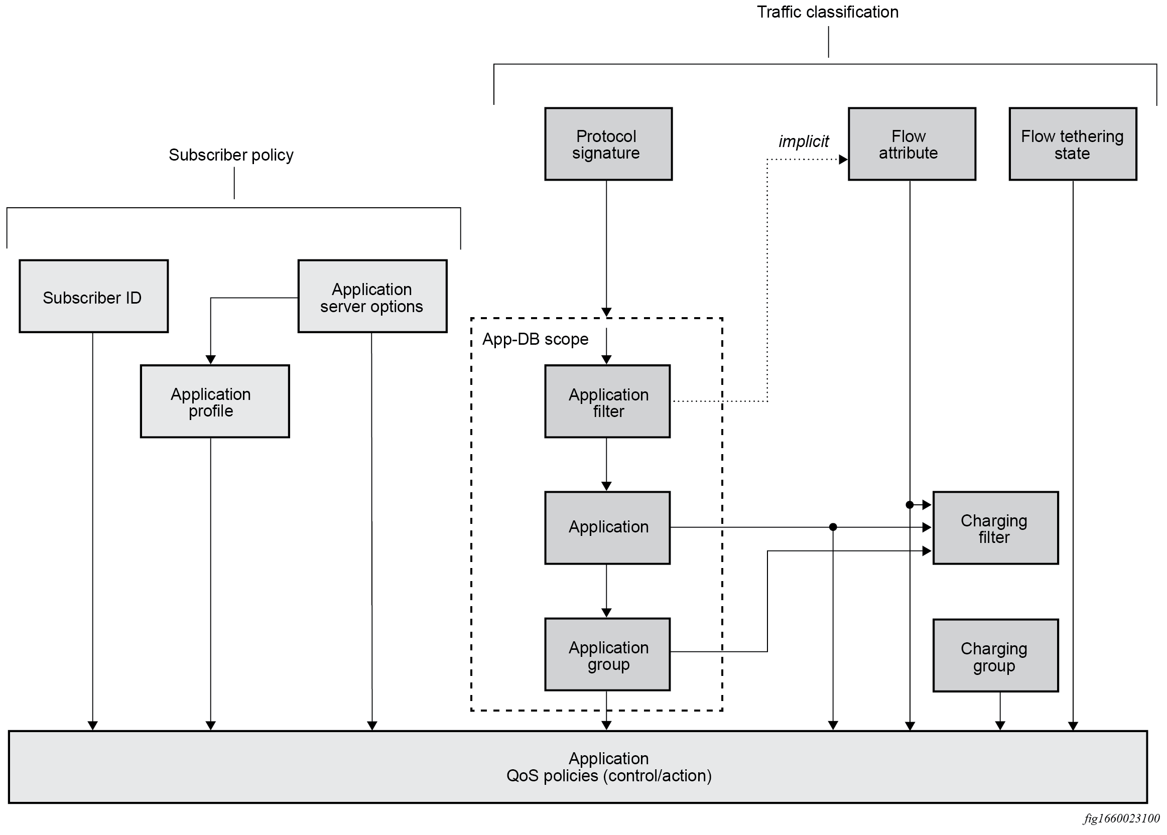 AA enables per AA subscriber (a residential subscriber, or a Layer 2 or Layer 3 SAP or spoke SDP), per application policy for all or a subset of AA subscriber's applications. This provides the following capabilities: