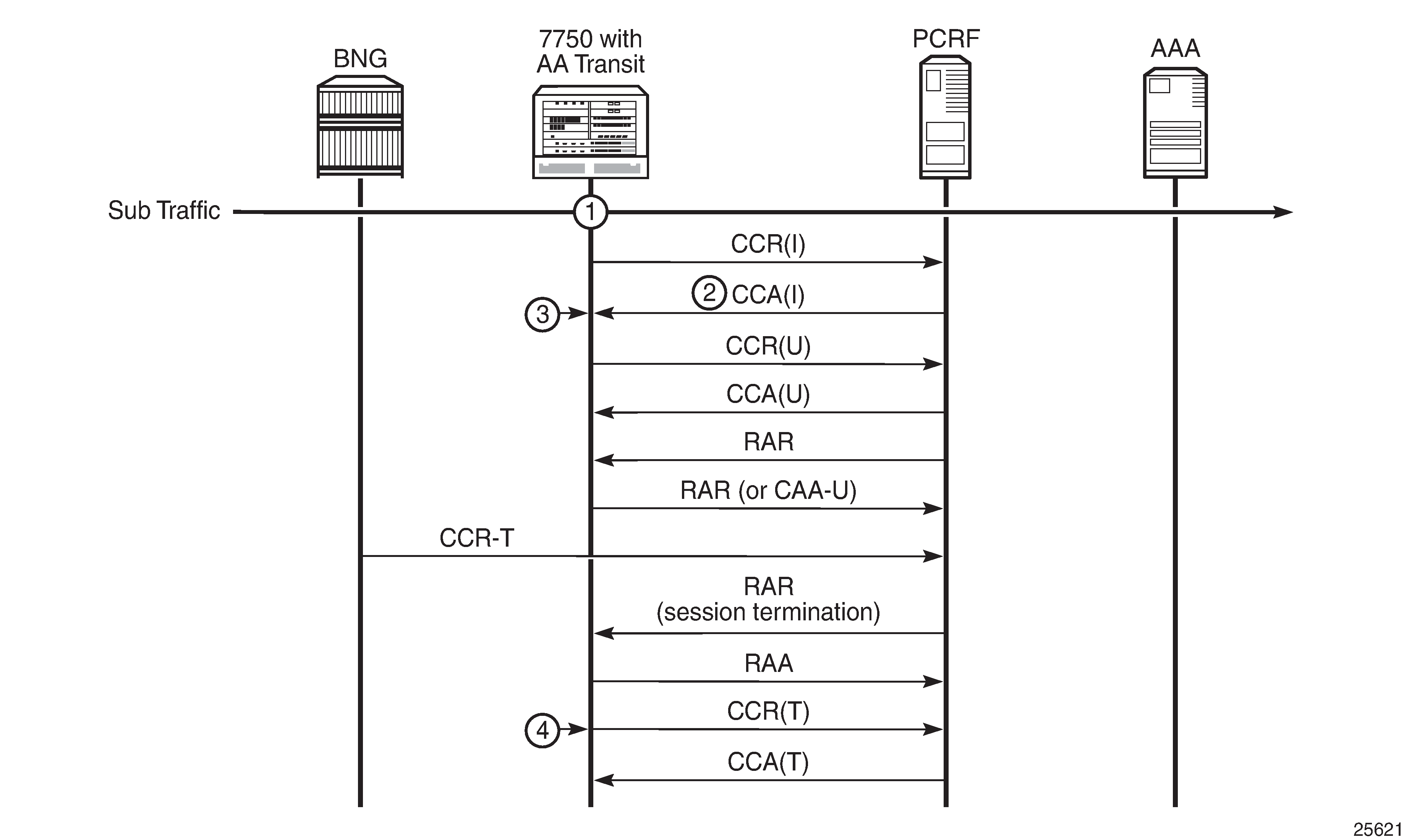 There are residential topologies where it is not possible or practical to distribute ISAs into the same network elements that run ESM, including for legacy edge BRASs that still need AA policy (reporting and control) for the same Internet services, and which needs to be aligned and consistent with the ESM AA policy. This is supported using transit AA subscribers, typically in the first routed element behind the legacy edge.