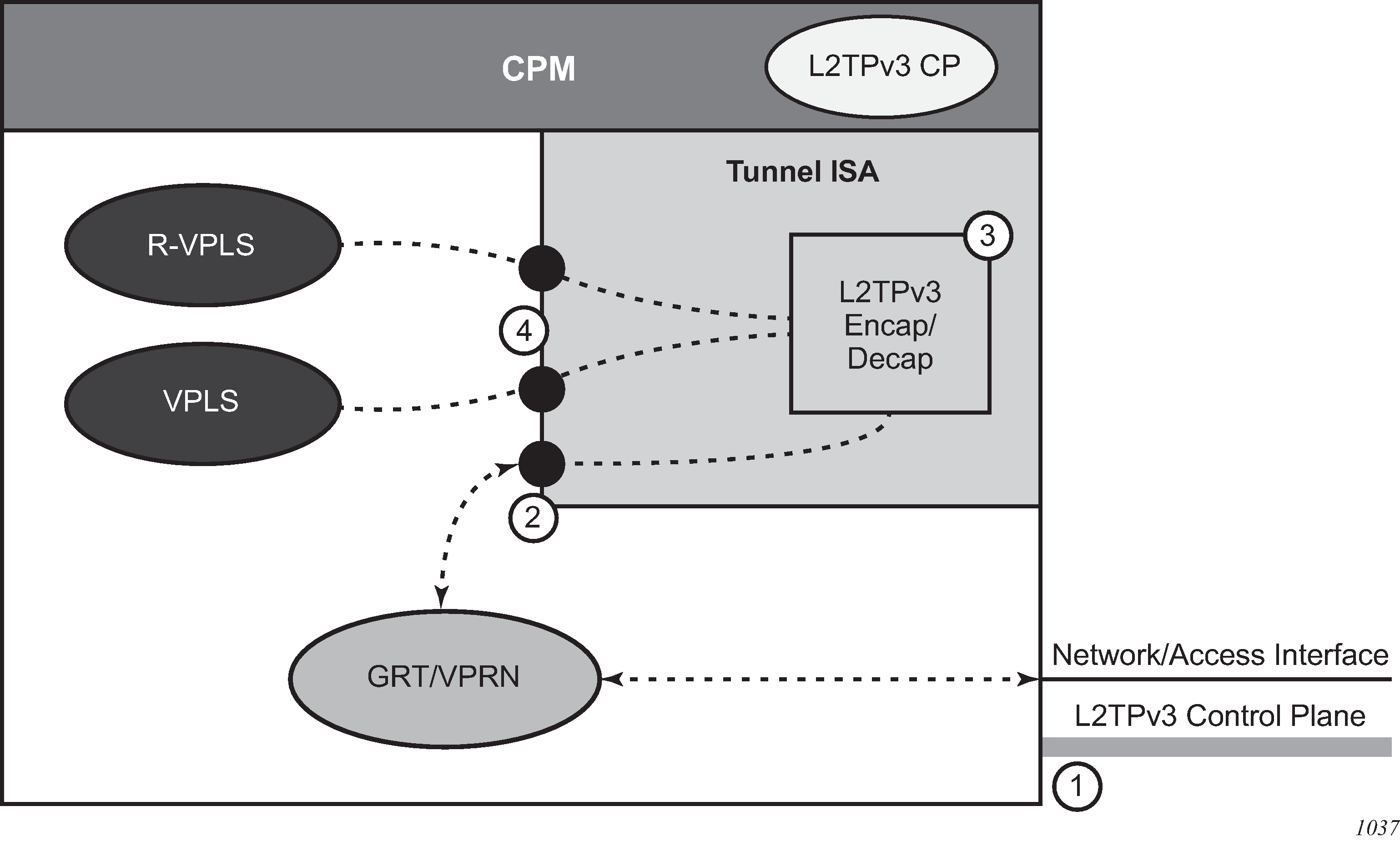 L2TPv3 encapsulation and decapsulation processing is handled within the tunnel ISA. |