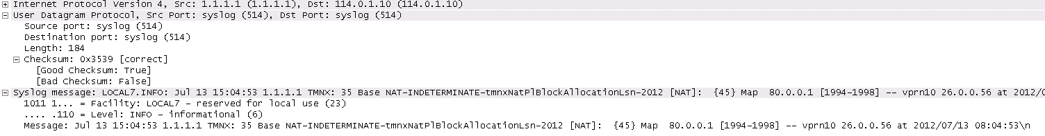 The S-NAPT service on the 7750 SR BNG incorporates a port range block feature to address scalability of a NAT mapping solution. With a single BNG capable of hundreds of thousands of NAT mappings every second, logging each mapping as it is created and destroyed logs for later retrieval (as may be required by law enforcement) could quickly overwhelm the fastest of databases and messaging protocols. Port range blocks address the issue of logging and customer location functions by allocating a block of contiguous outside ports to a single subscriber. Instead of logging each NAT mapping, a single log entry is created when the first mapping is created for a subscriber and a final log entry when the last mapping is destroyed. This can reduce the number of log entries by 5000x or more. An added benefit is that as the range is allocated on the first mapping, external applications or customer location functions may be populated with this data to make real-time subscriber identification, instead of having to query the NAT as to the subscriber identity in real-time and possibly delay applications.