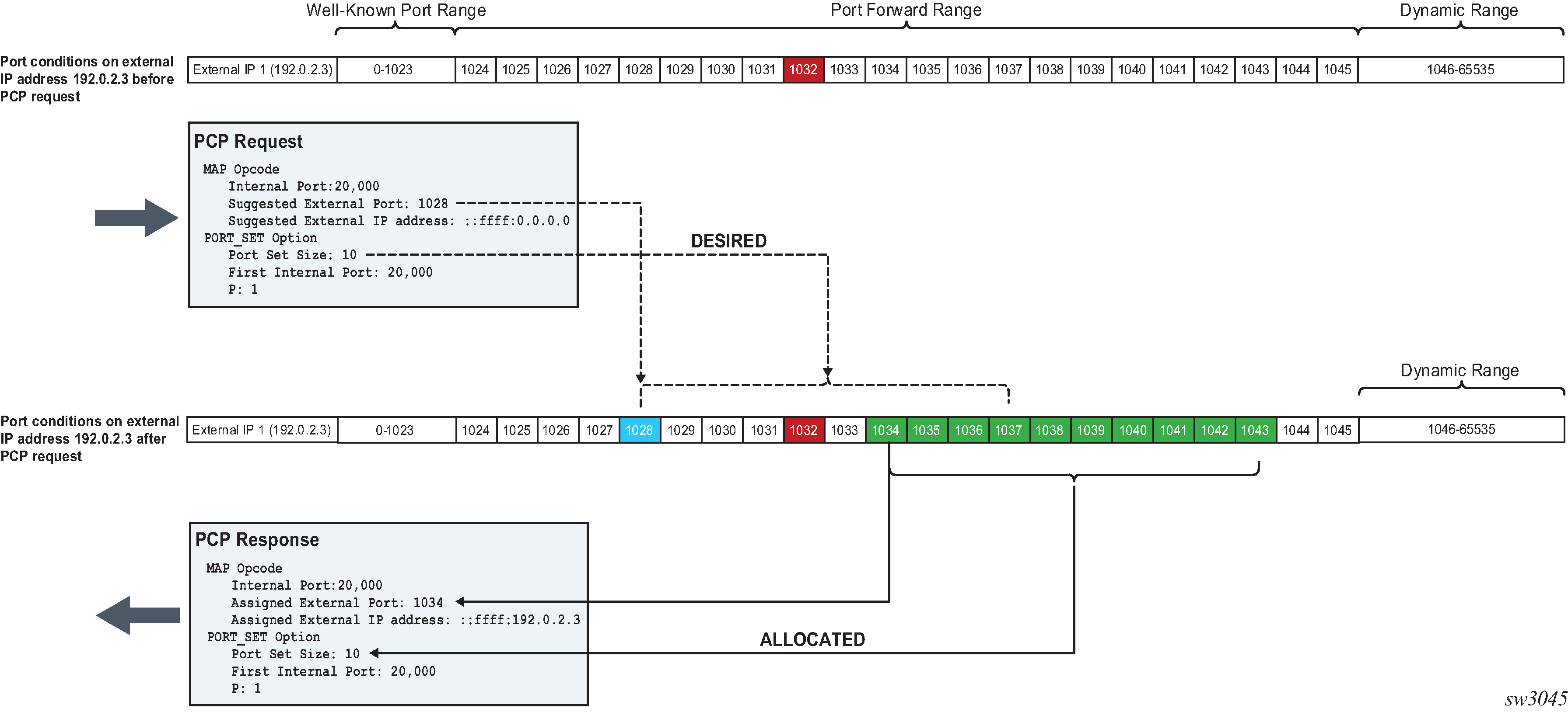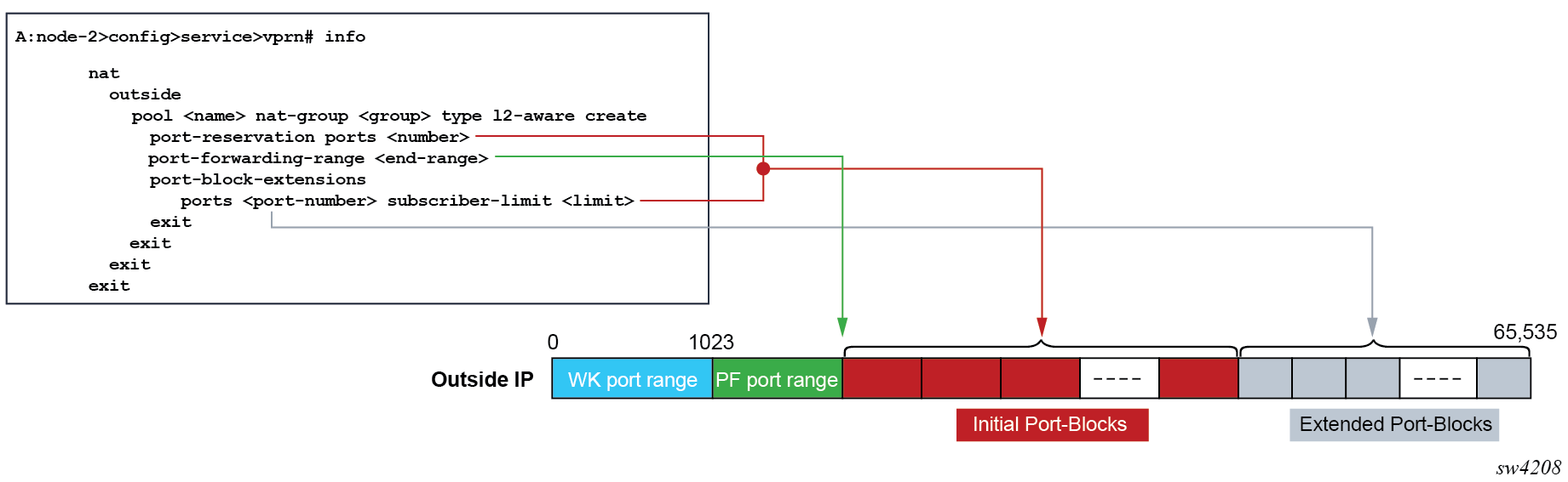 At the time of the port forward creation, the dynamic port block is reserved in the following fashion: