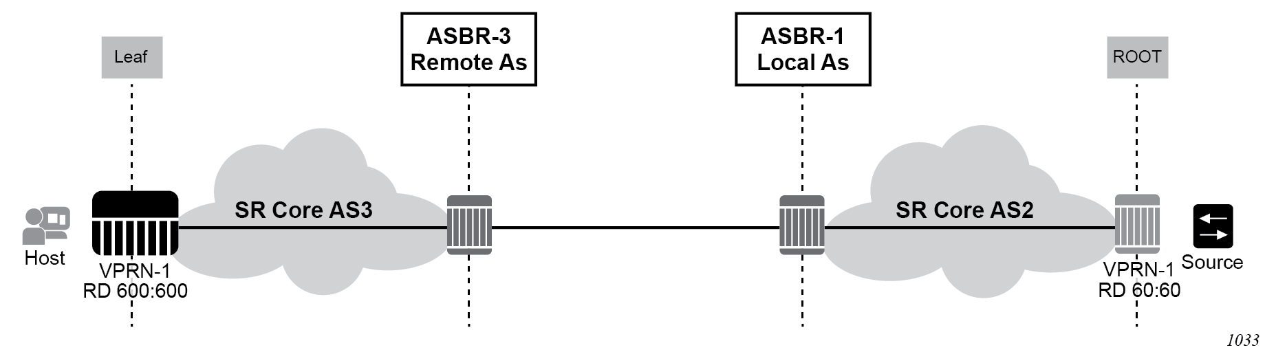 This feature allows multicast services to use segmented protocols and span them over multiple autonomous systems (ASs), as done in unicast services. As IP VPN or GRT services span multiple IGP areas or multiple ASs, either for a network designed to deal with scale or as result of commercial acquisitions, users may require Inter-AS VPN (unicast) connectivity. For example, an Inter-AS VPN can break the IGP, MPLS and BGP protocols into access segments and core segments, allowing higher scaling of protocols by segmenting them into their own islands. SR OS also allows for similar provision of multicast services and for spanning these services over multiple IGP areas or multiple ASs.