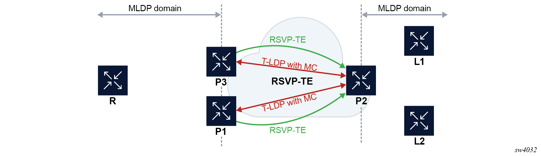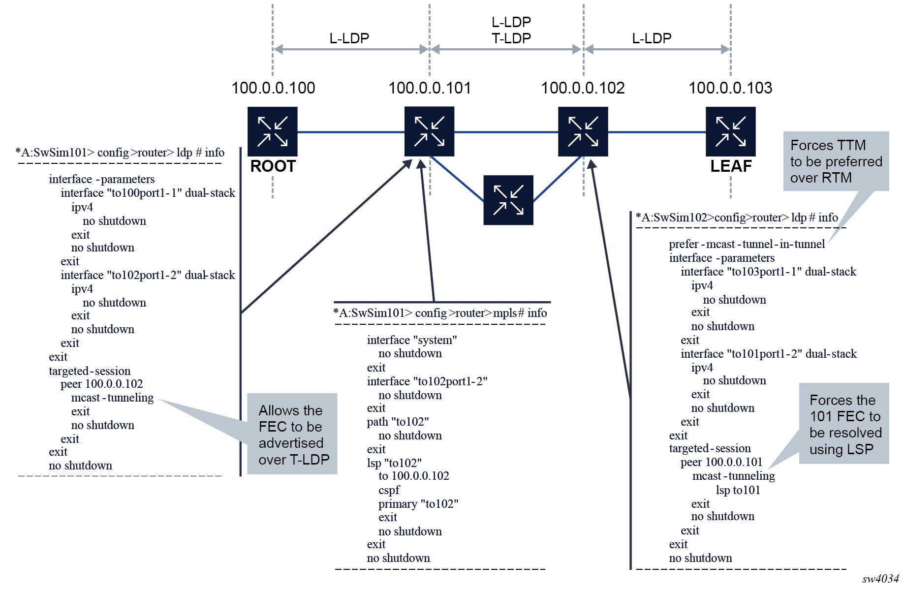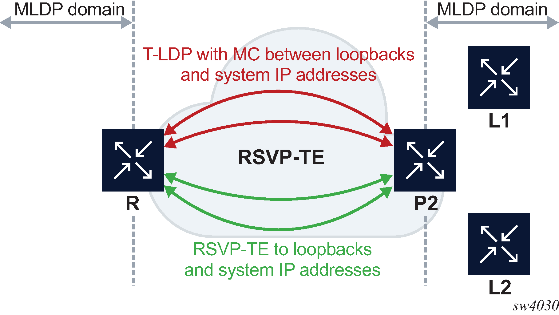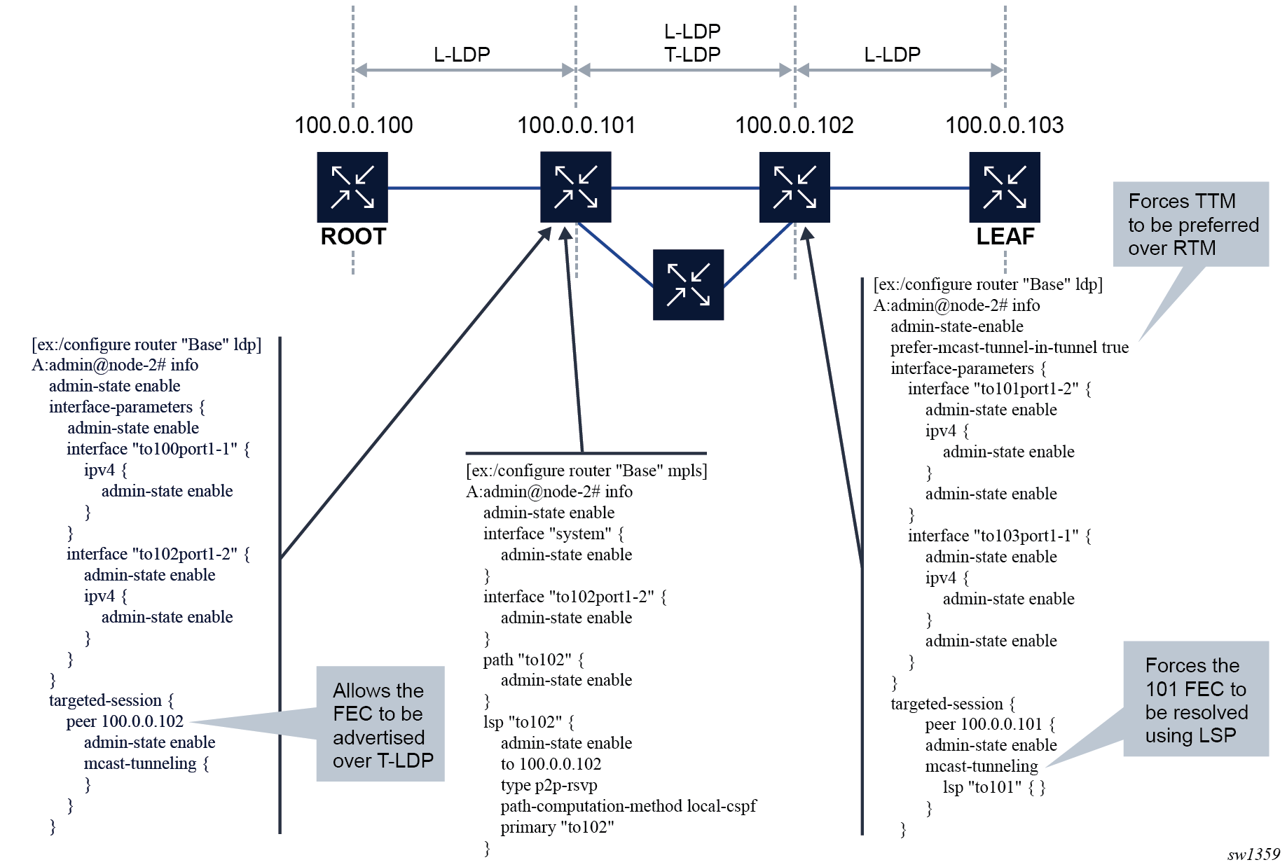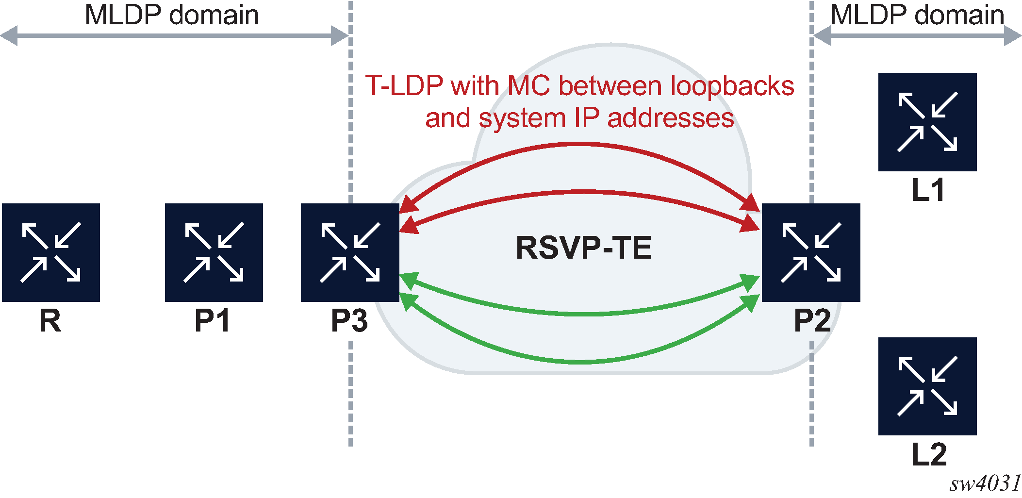 Root node with multiple T-LDP to the root node shows an example of multiple T-LDP sessions to the root node.