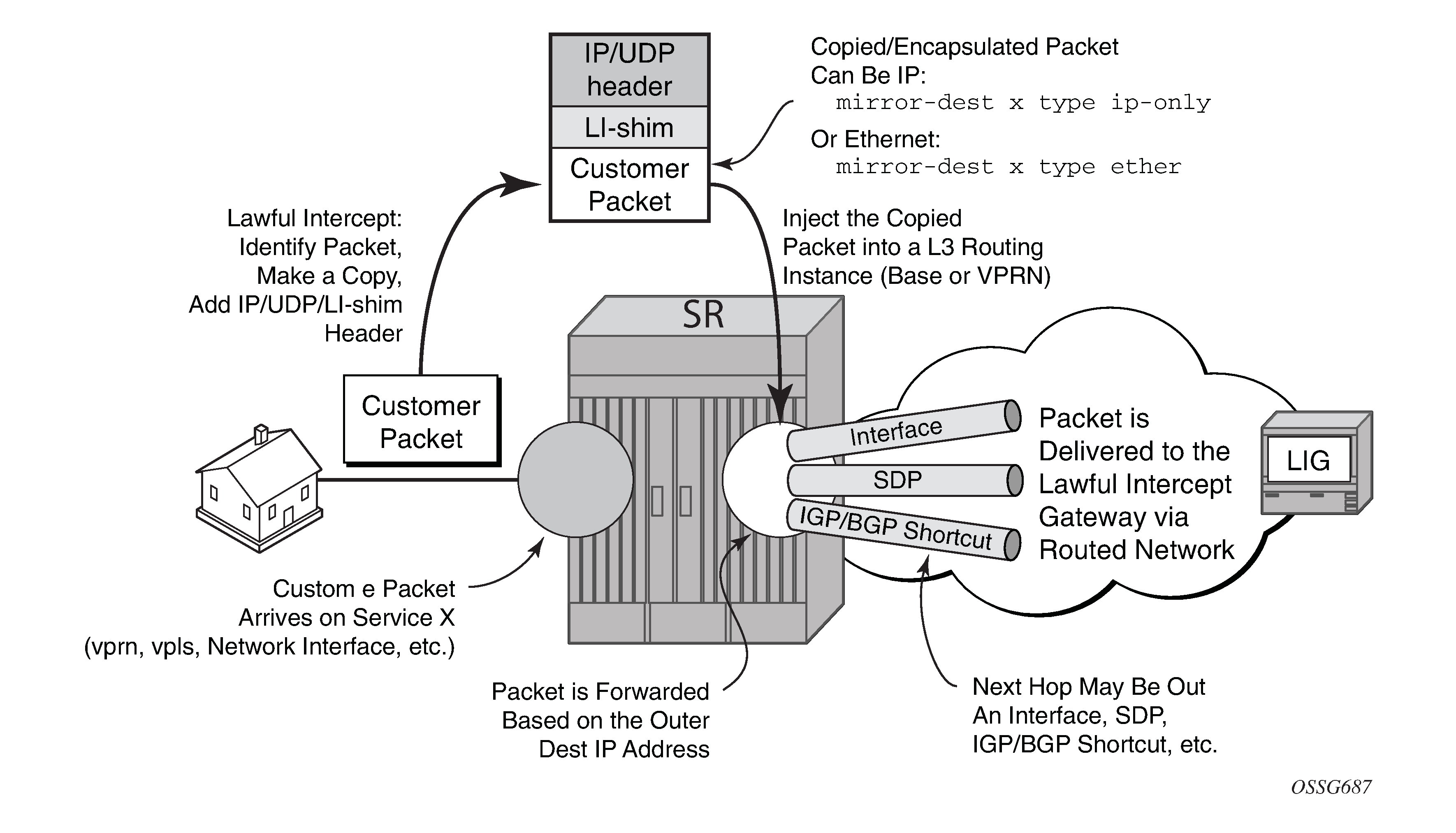 Subscriber mirroring applies only to the 7750 SR, 7450 ESS, 7750 SR-s, 7750 SR-e and 7750 SR-a platforms.