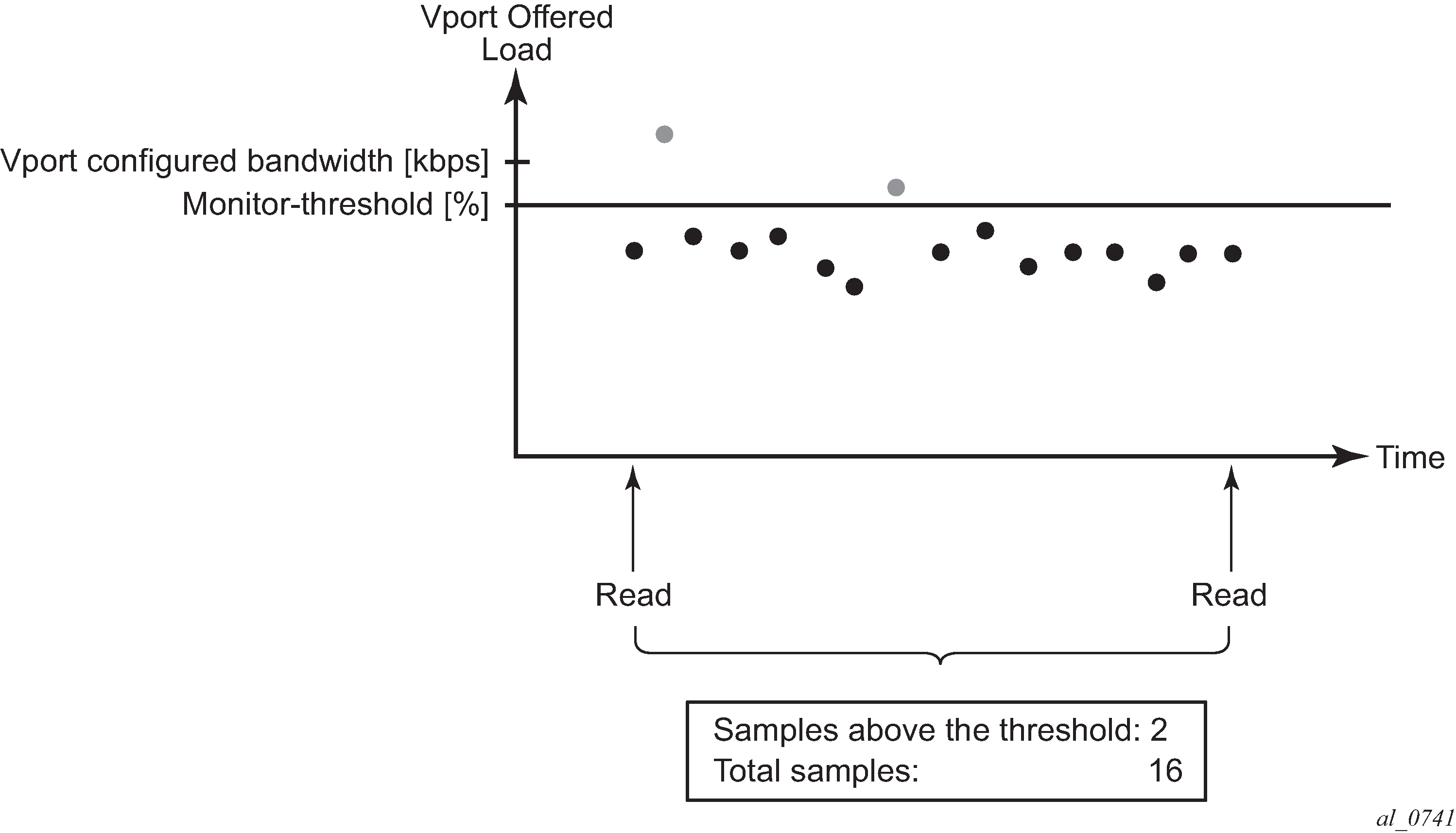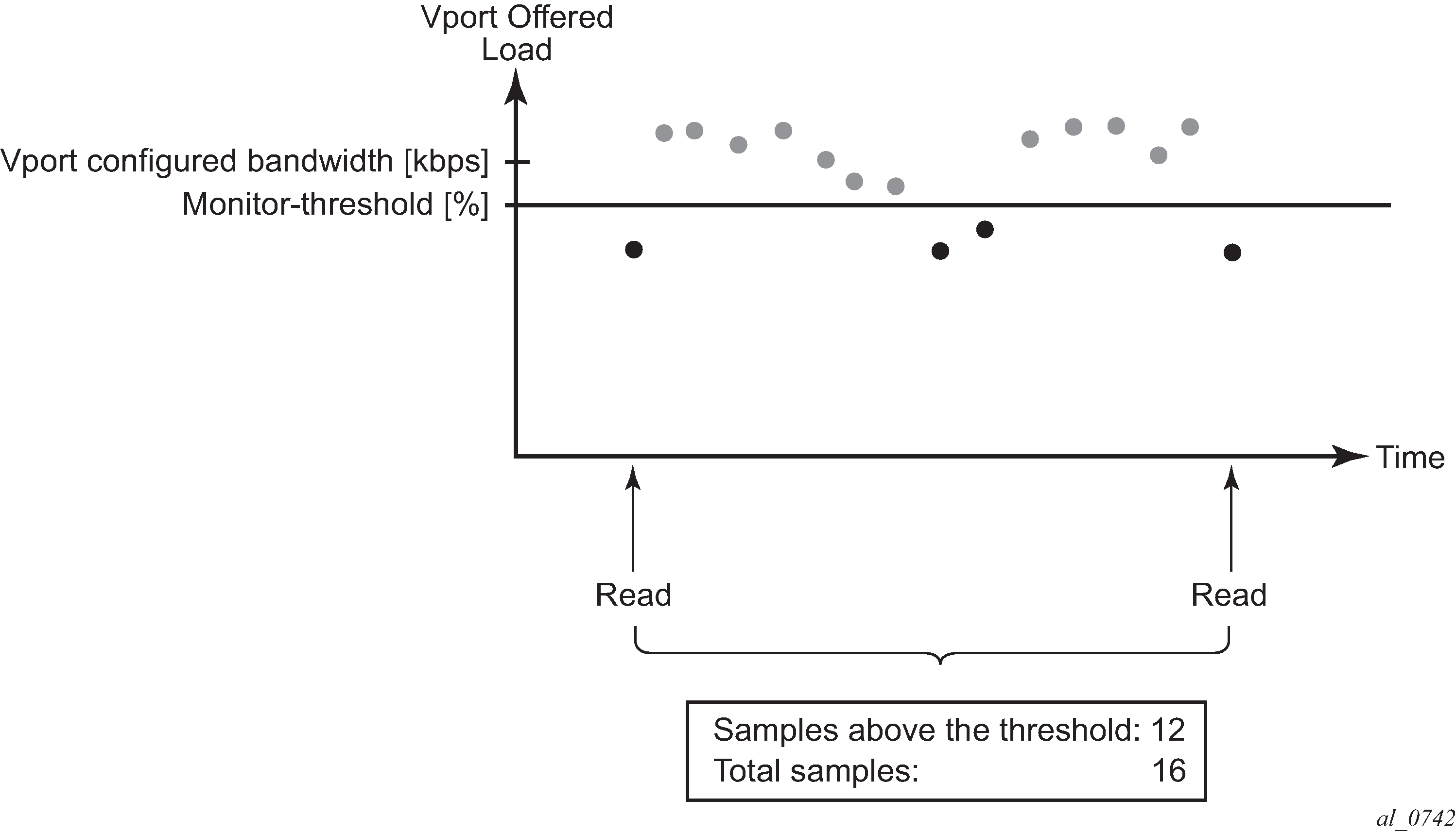 A typical example of congestion monitoring on an Egress Port Scheduler (EPS) is when the EPS is configured within a Vport. A Vport is a construct in an H-QoS hierarchy that can be used to control the bandwidth associated with an access network element (such as, GPON port, OLT, DSLAM) or a retailer that has subscribers on an access node (among other retailers).