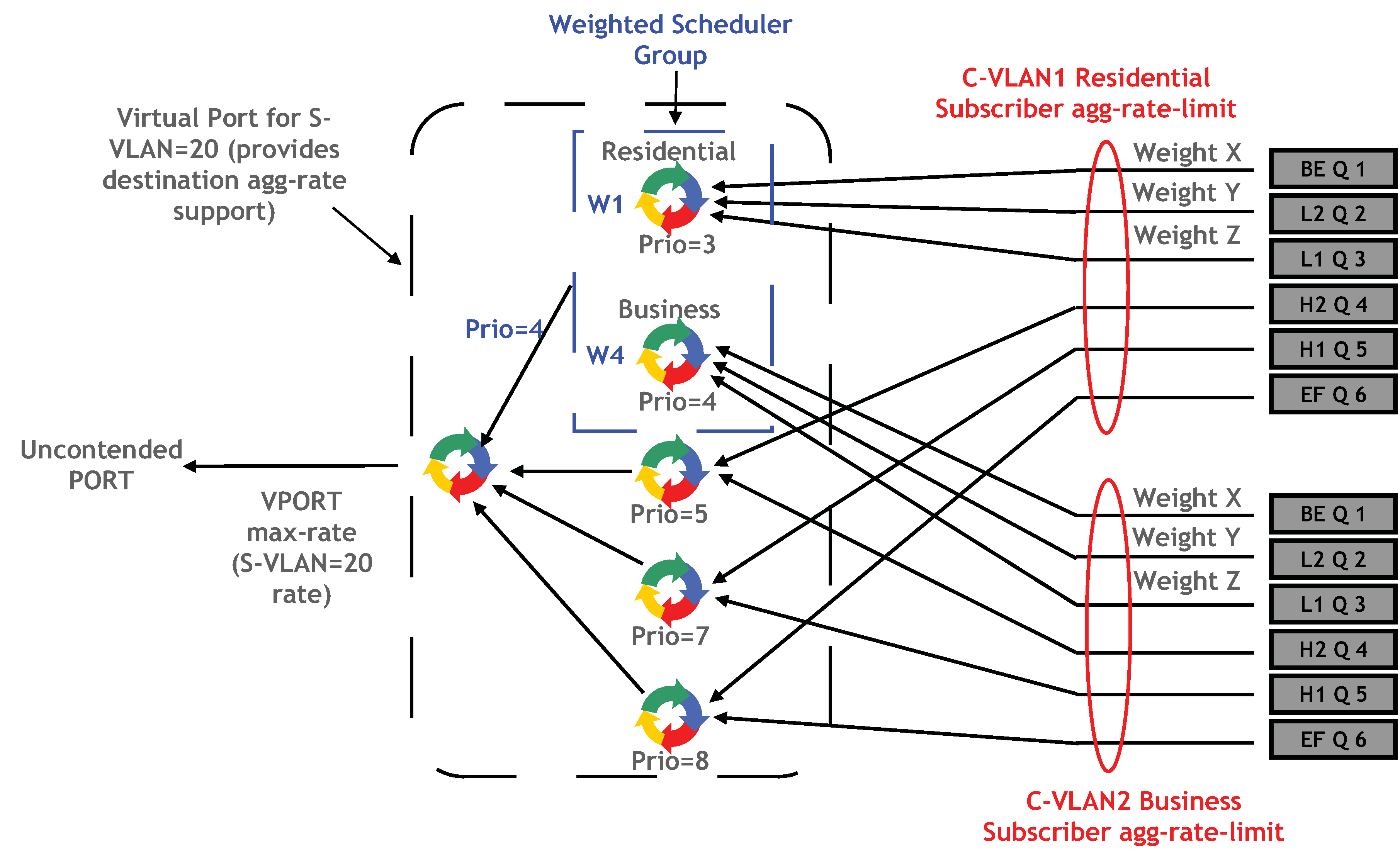 Figure 1. Port-level virtual scheduler bandwidth allocation based on priority and CIR