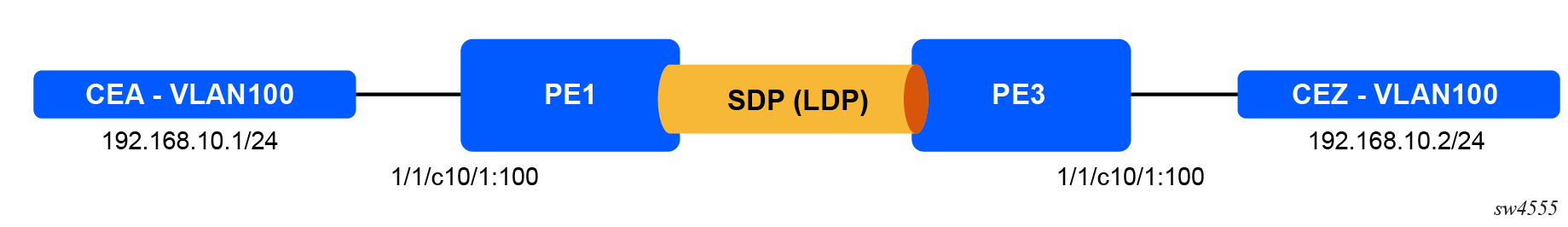 /configure service epipe "Epipe-VLAN100" sap 1/1/c10/1:100 { }