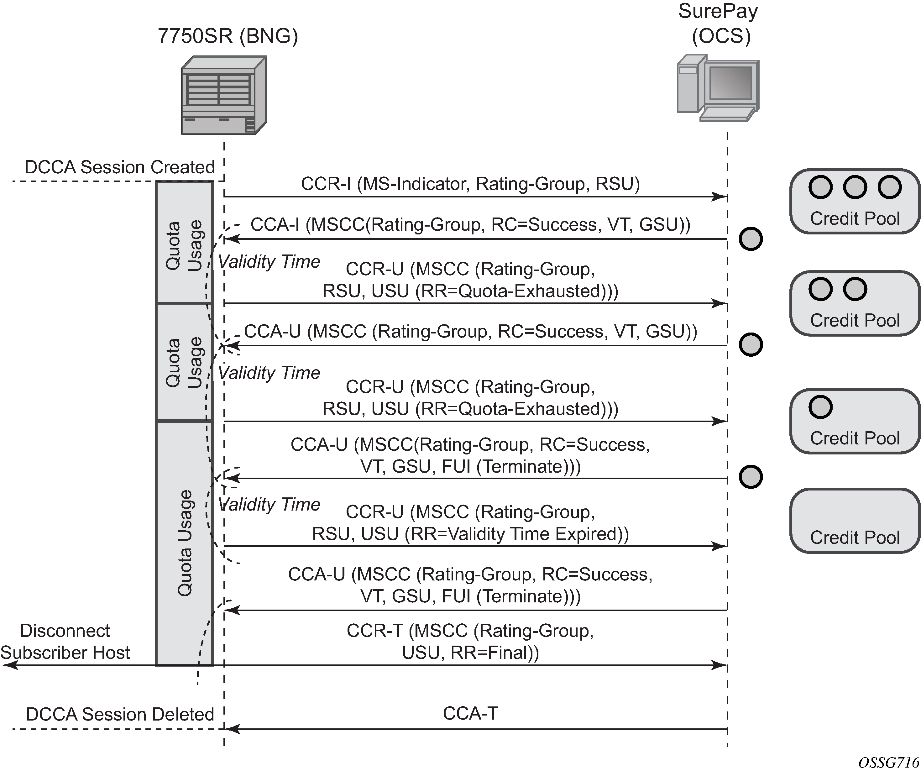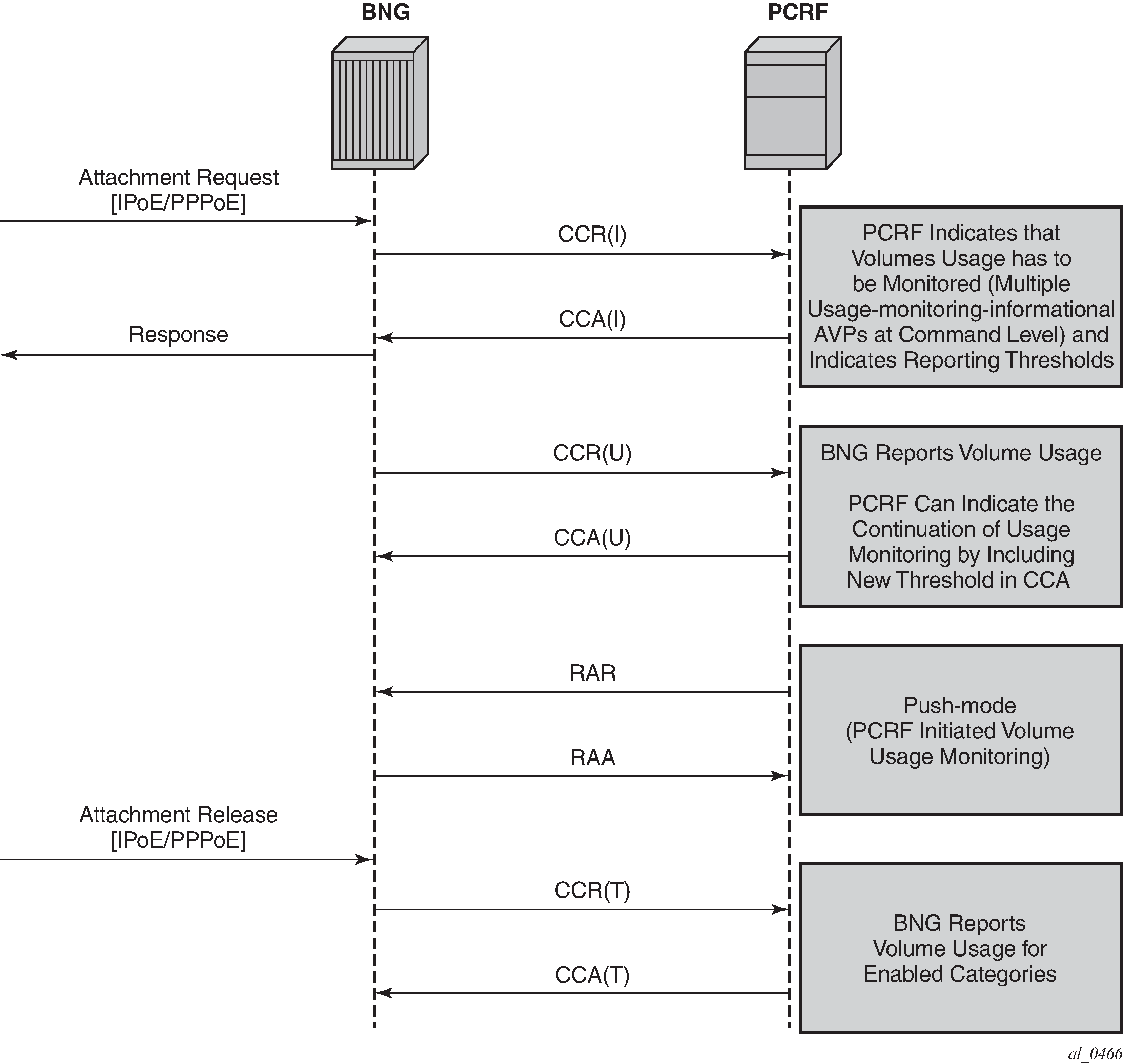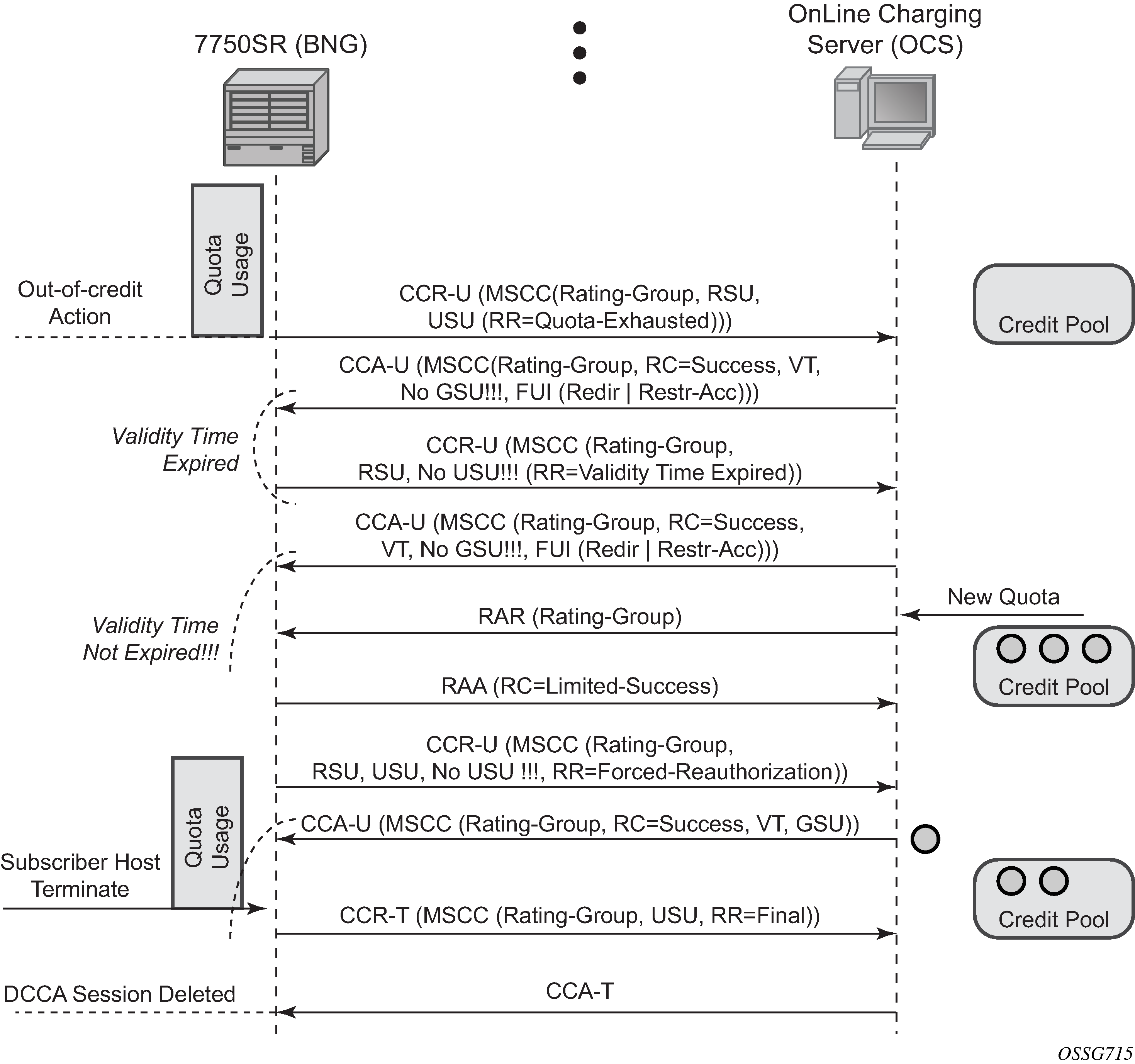 Gx Usage Monitoring (UM) relies on the Credit Control Instance (CCI) for the collection of byte counters. CCI is instantiated through a credit-category map (monitoring-key) and associated with the SLA profile instance (SPI) of the DHCP/PPPoE session. The bytes collected through CCI are periodically synchronized between the nodes. The synchronization of UM is automatically enabled for Gx/UM enabled subscribers in a dual-homed environment.