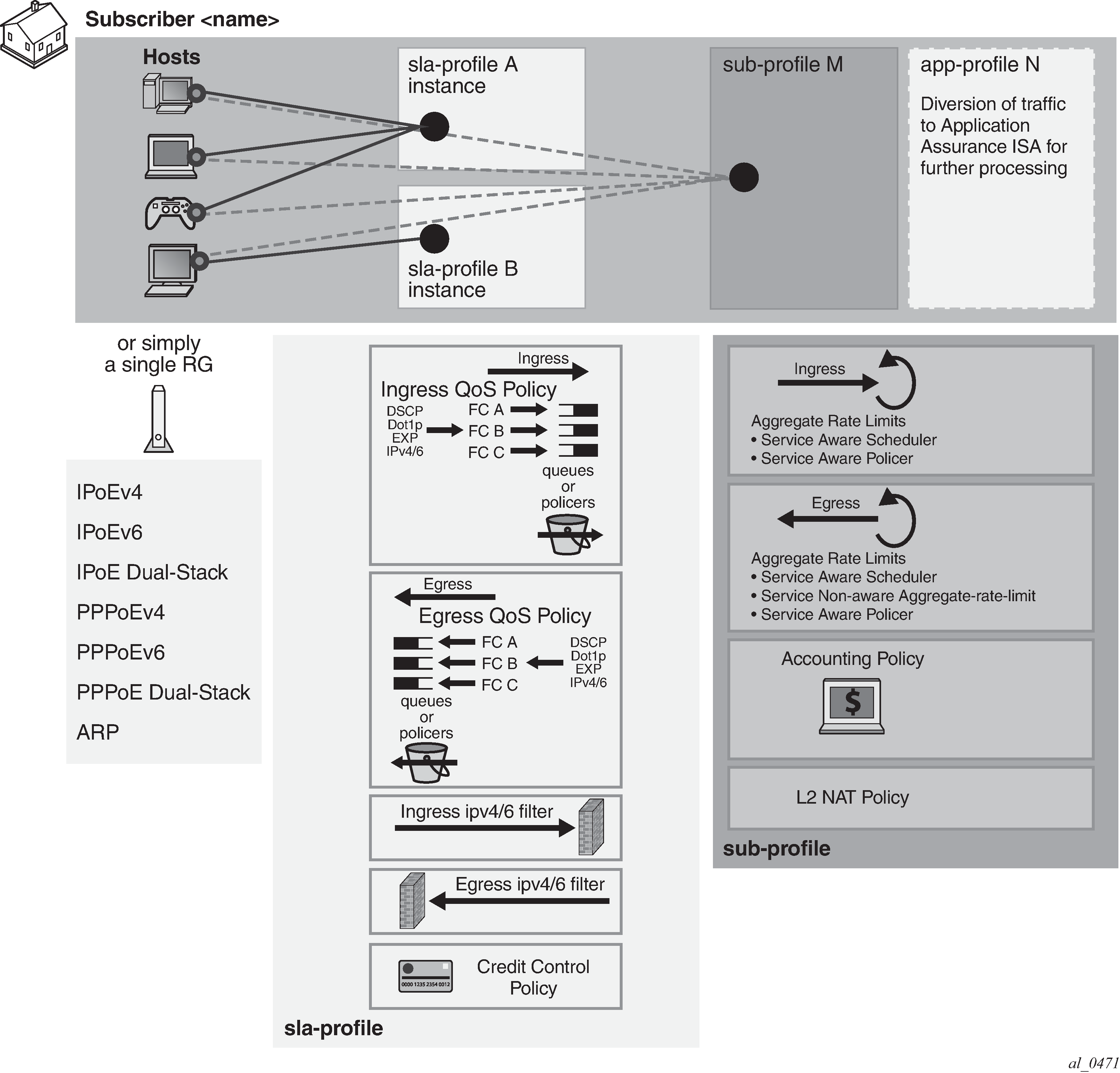 subscriber-related overrides (sub/sla/aa-profile, subscriber-id, QoS, filter, category-map, and so on).