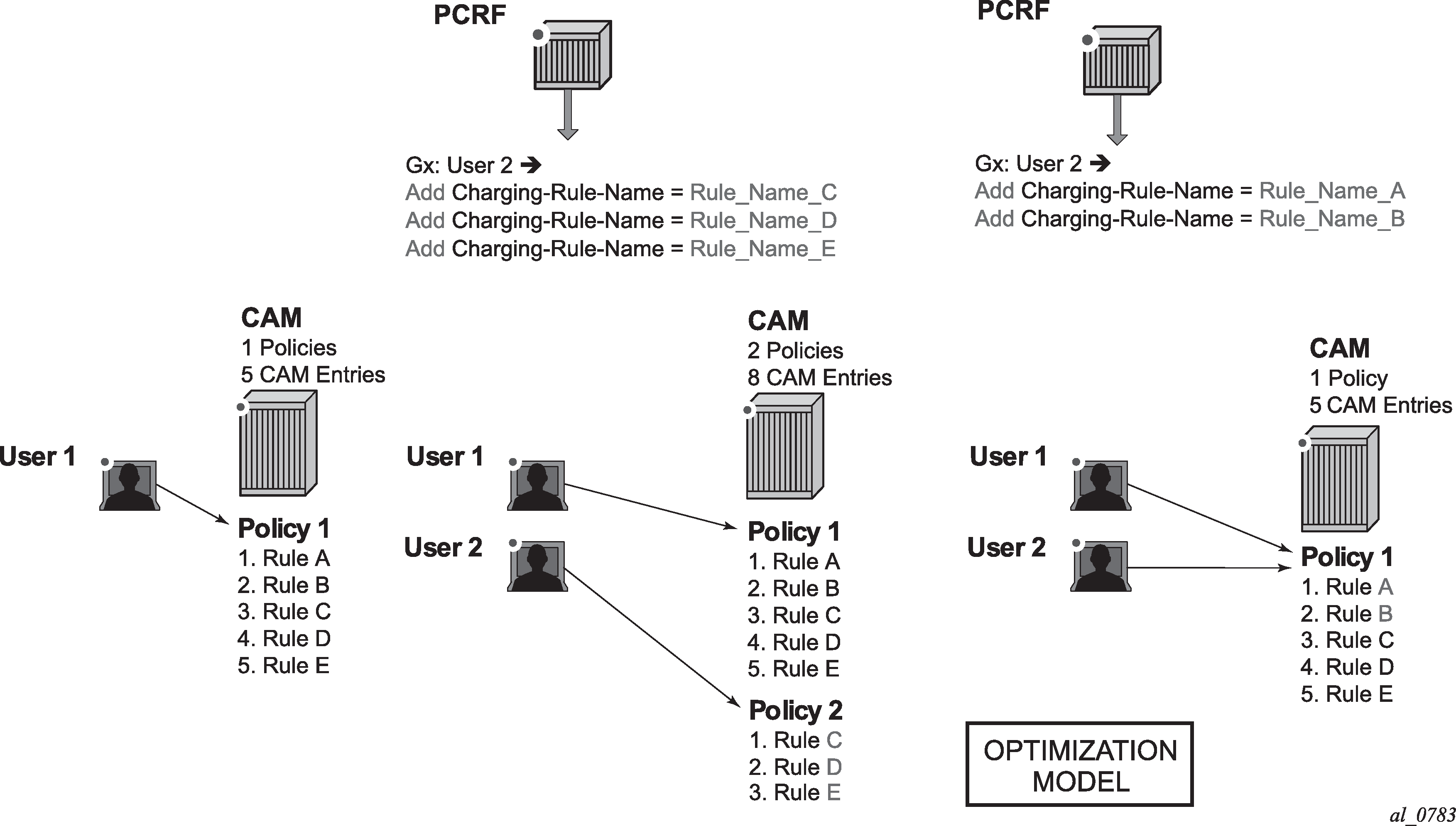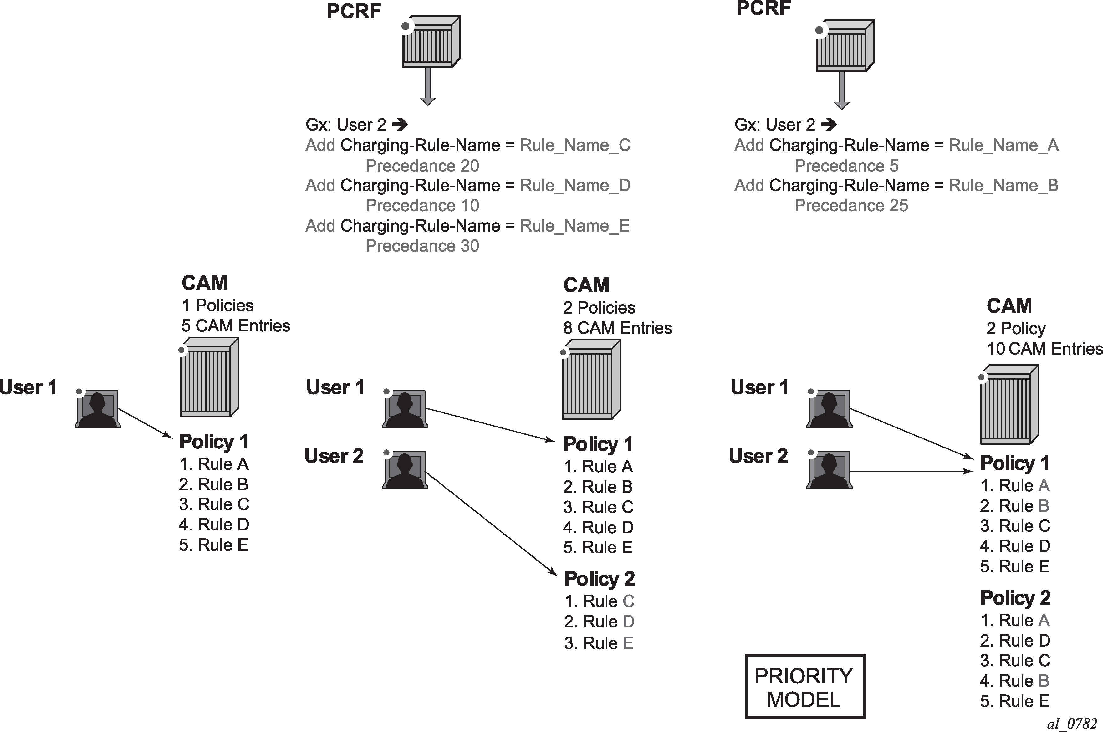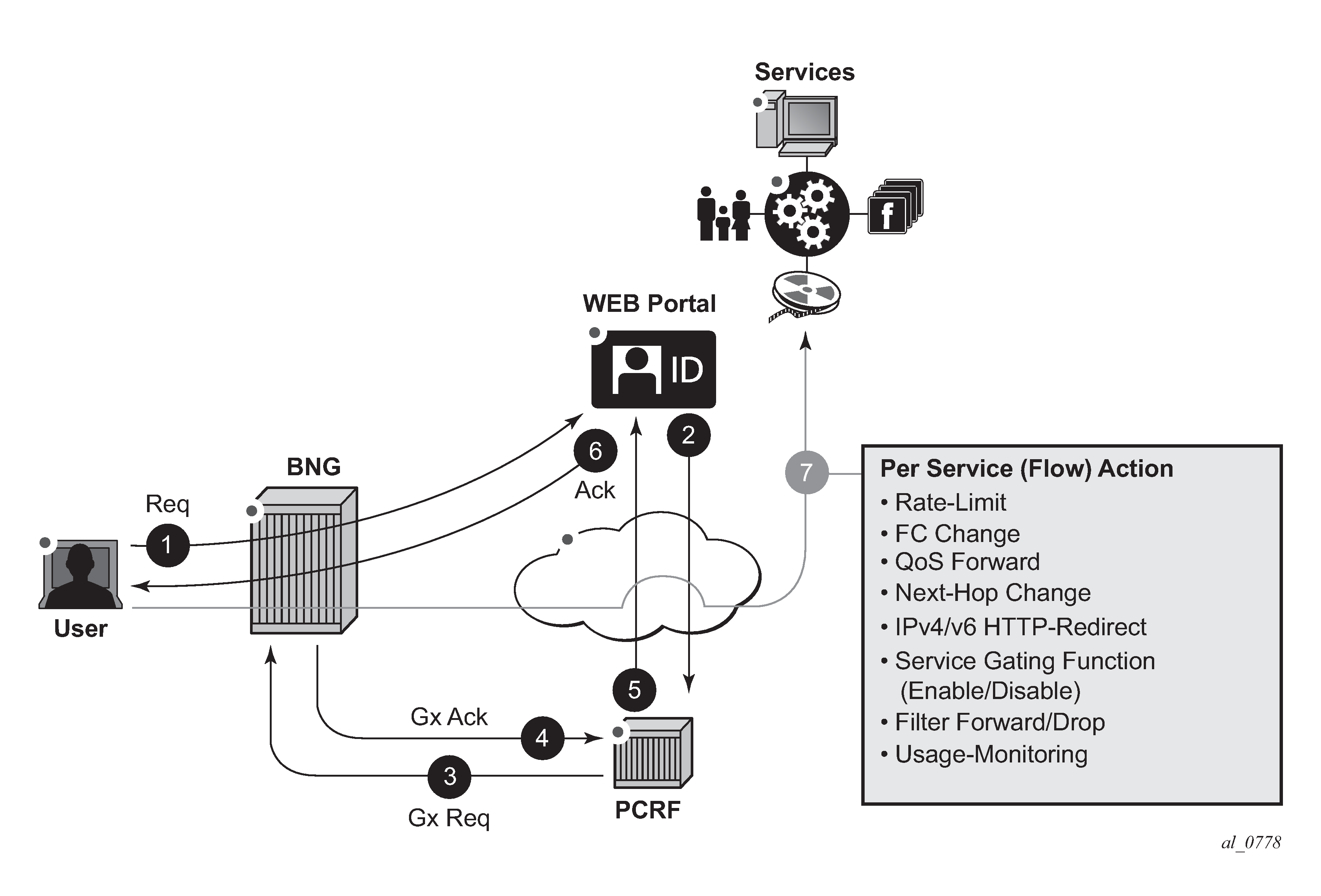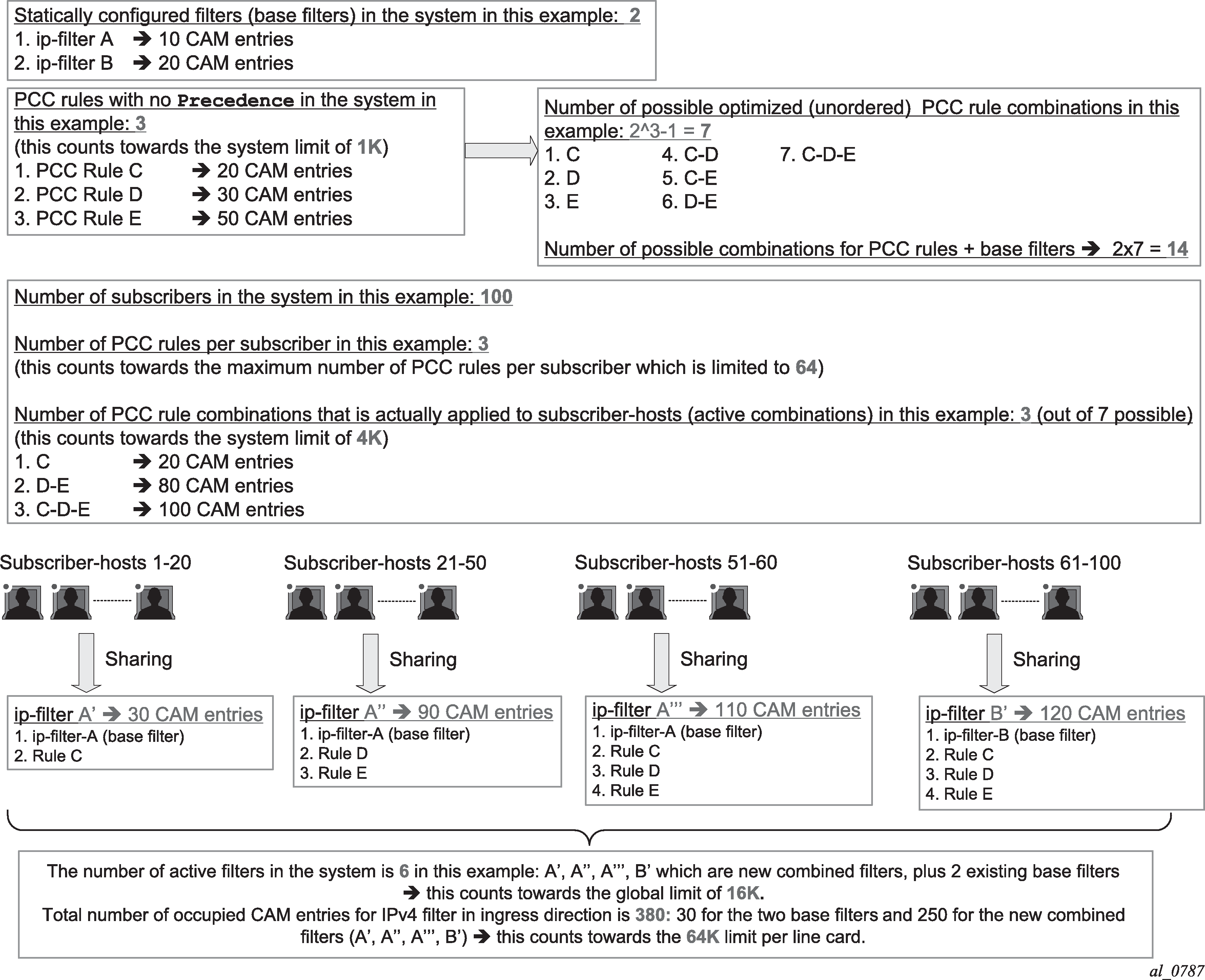 Gx flows are similar to dynamically created filter or ip-criteria (QoS) entries and are inserted within the entry range configured for the base filter/qos-policy.