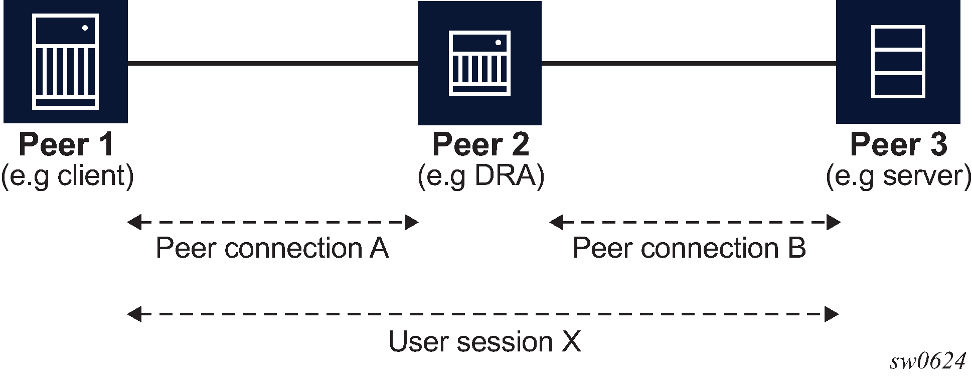 Diameter peers exchange messages using a transport level connection (TCP in SR OS). Each peer is identified by a unique Fully Qualified Domain Name (FQDN). On the IP level, Diameter peers are always directly connected.